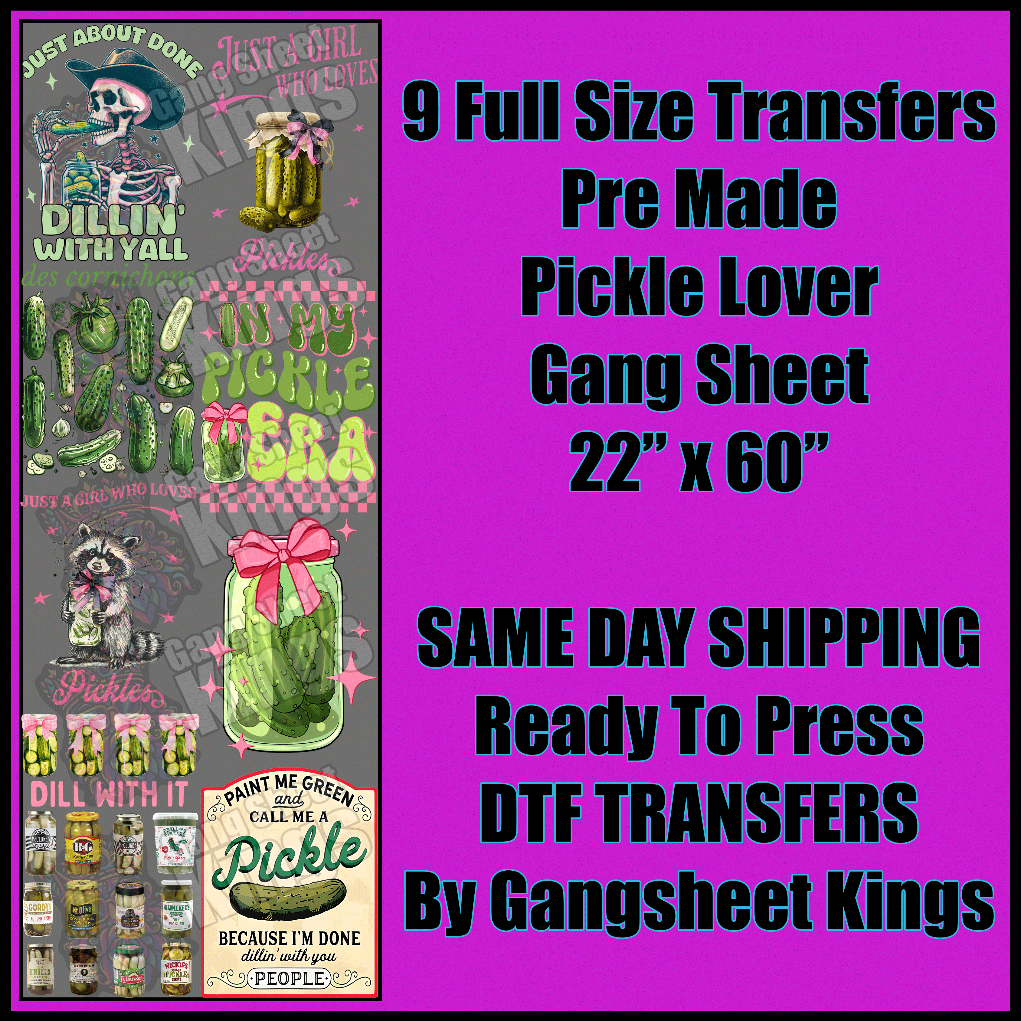 Pre-made gang sheets are professionally designed transfer sheets featuring multiple graphics arranged on a single sheet, ready for heat application onto various surfaces. These sheets are perfect for crafters, small businesses, or anyone looking for high-quality, hassle-free designs. Each gang sheet includes a variety of pre-arranged artwork, saving time and effort by eliminating the need to create your own layout.