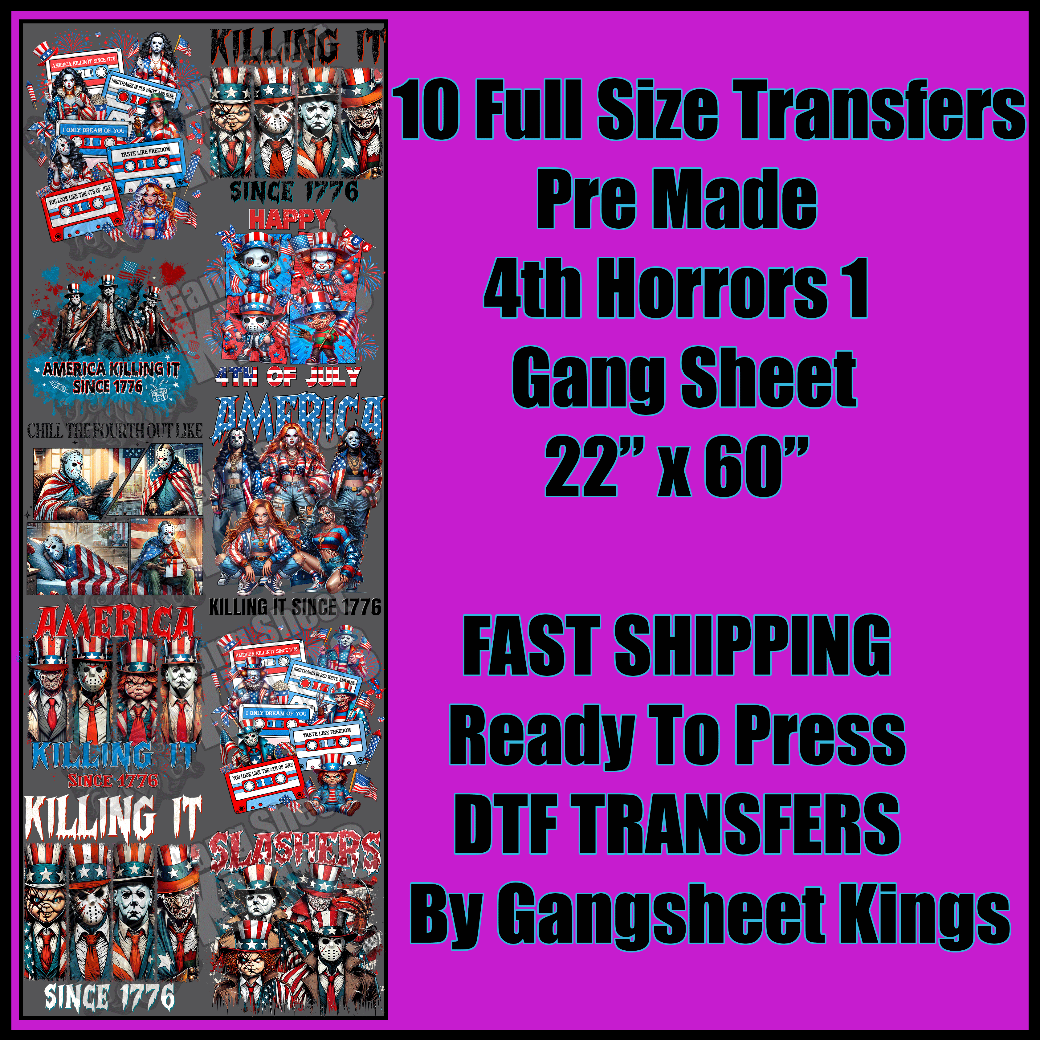 Pre-made gang sheets are professionally designed transfer sheets featuring multiple graphics arranged on a single sheet, ready for heat application onto various surfaces. These sheets are perfect for crafters, small businesses, or anyone looking for high-quality, hassle-free designs. Each gang sheet includes a variety of pre-arranged artwork, saving time and effort by eliminating the need to create your own layout.