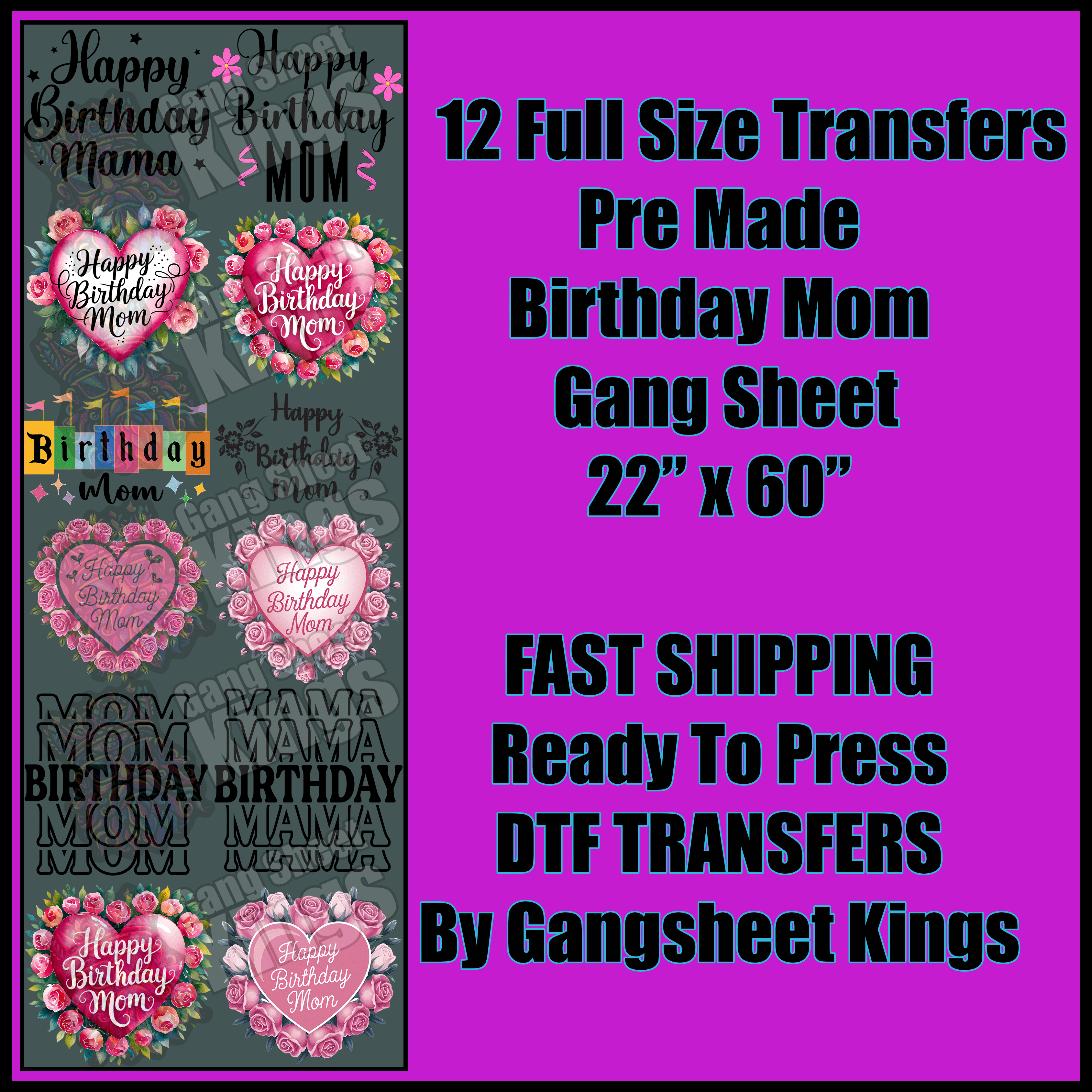 Pre-made gang sheets are professionally designed transfer sheets featuring multiple graphics arranged on a single sheet, ready for heat application onto various surfaces. These sheets are perfect for crafters, small businesses, or anyone looking for high-quality, hassle-free designs. Each gang sheet includes a variety of pre-arranged artwork, saving time and effort by eliminating the need to create your own layout.