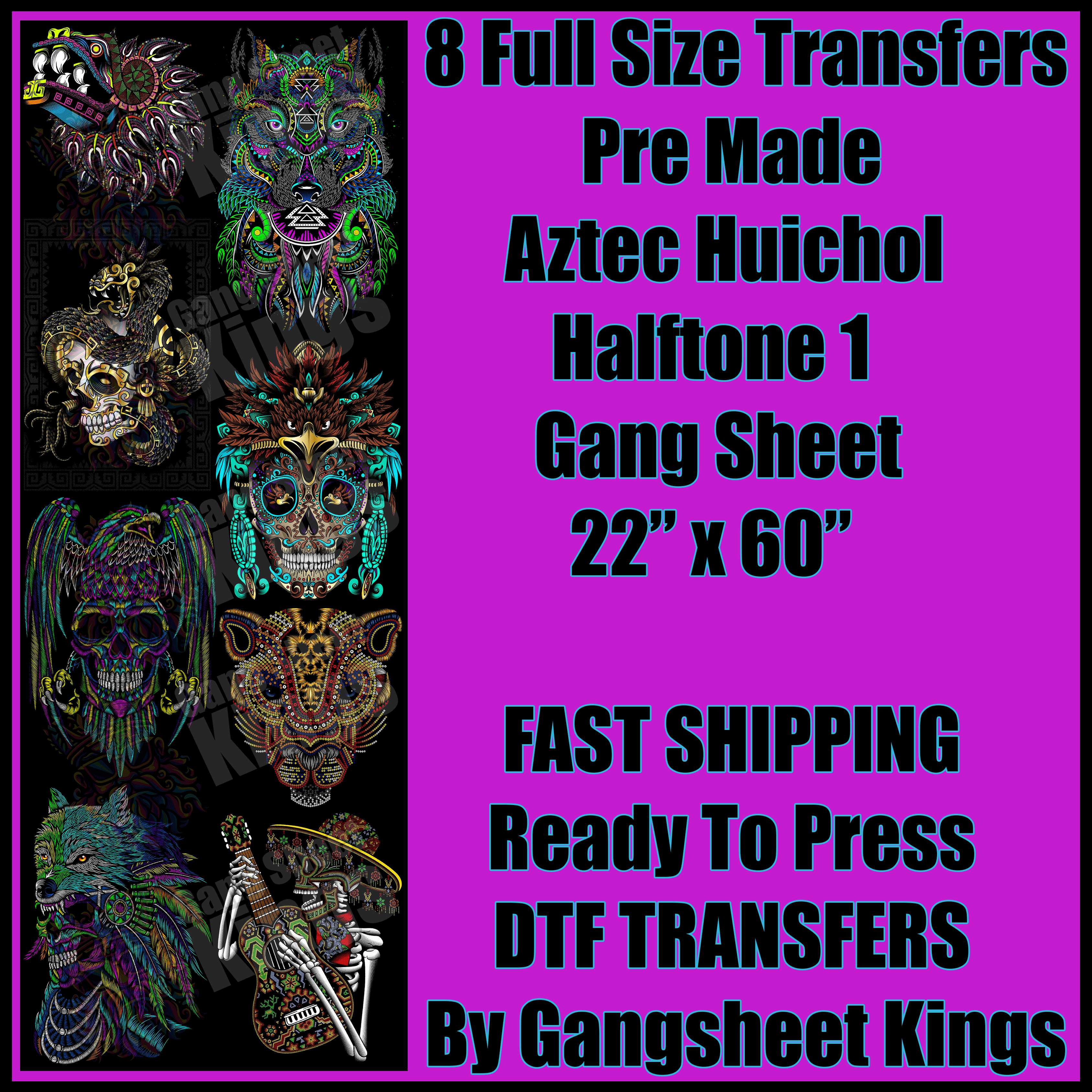 Pre-made gang sheets are professionally designed transfer sheets featuring multiple graphics arranged on a single sheet, ready for heat application onto various surfaces. These sheets are perfect for crafters, small businesses, or anyone looking for high-quality, hassle-free designs. Each gang sheet includes a variety of pre-arranged artwork, saving time and effort by eliminating the need to create your own layout.