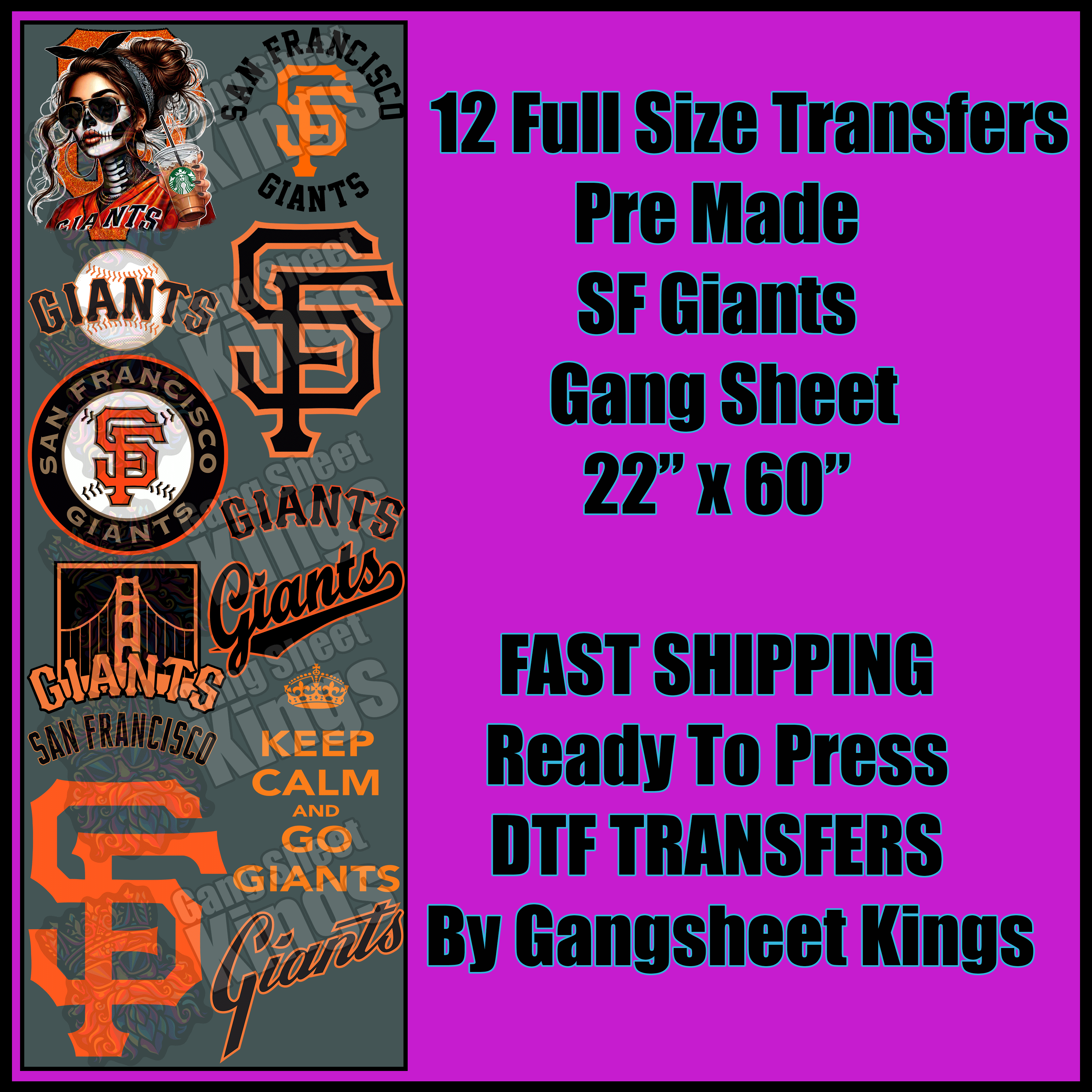 San Francisco Giants Baseball Gangsheet