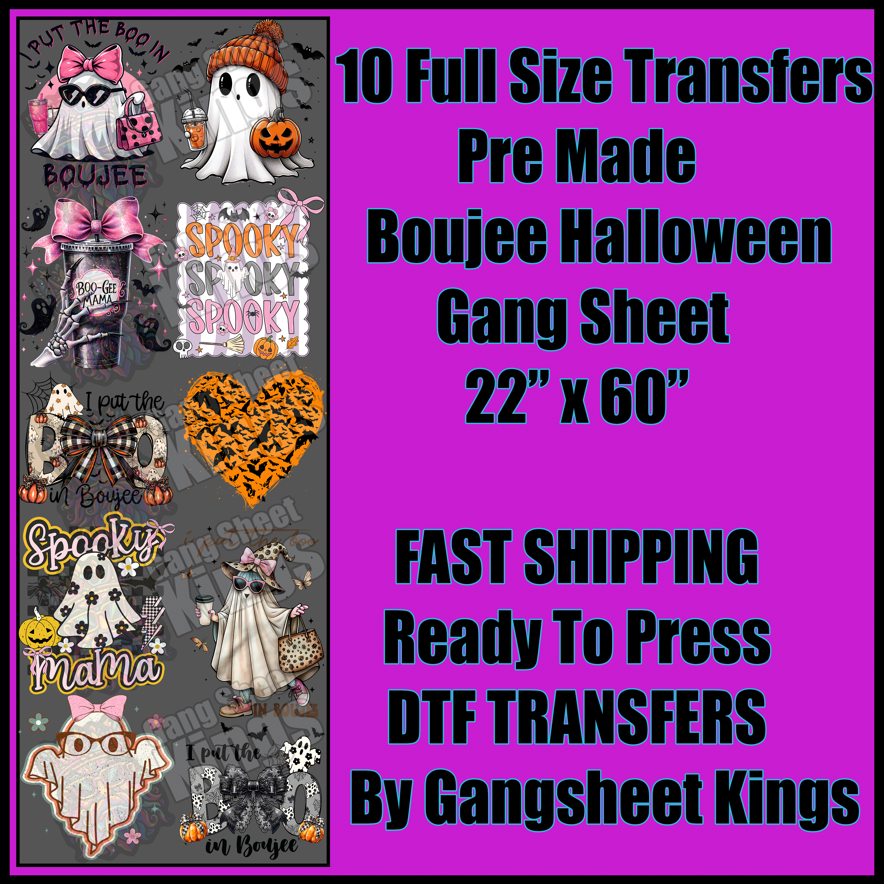 Pre-made gang sheets are professionally designed transfer sheets featuring multiple graphics arranged on a single sheet, ready for heat application onto various surfaces. These sheets are perfect for crafters, small businesses, or anyone looking for high-quality, hassle-free designs. Each gang sheet includes a variety of pre-arranged artwork, saving time and effort by eliminating the need to create your own layout.