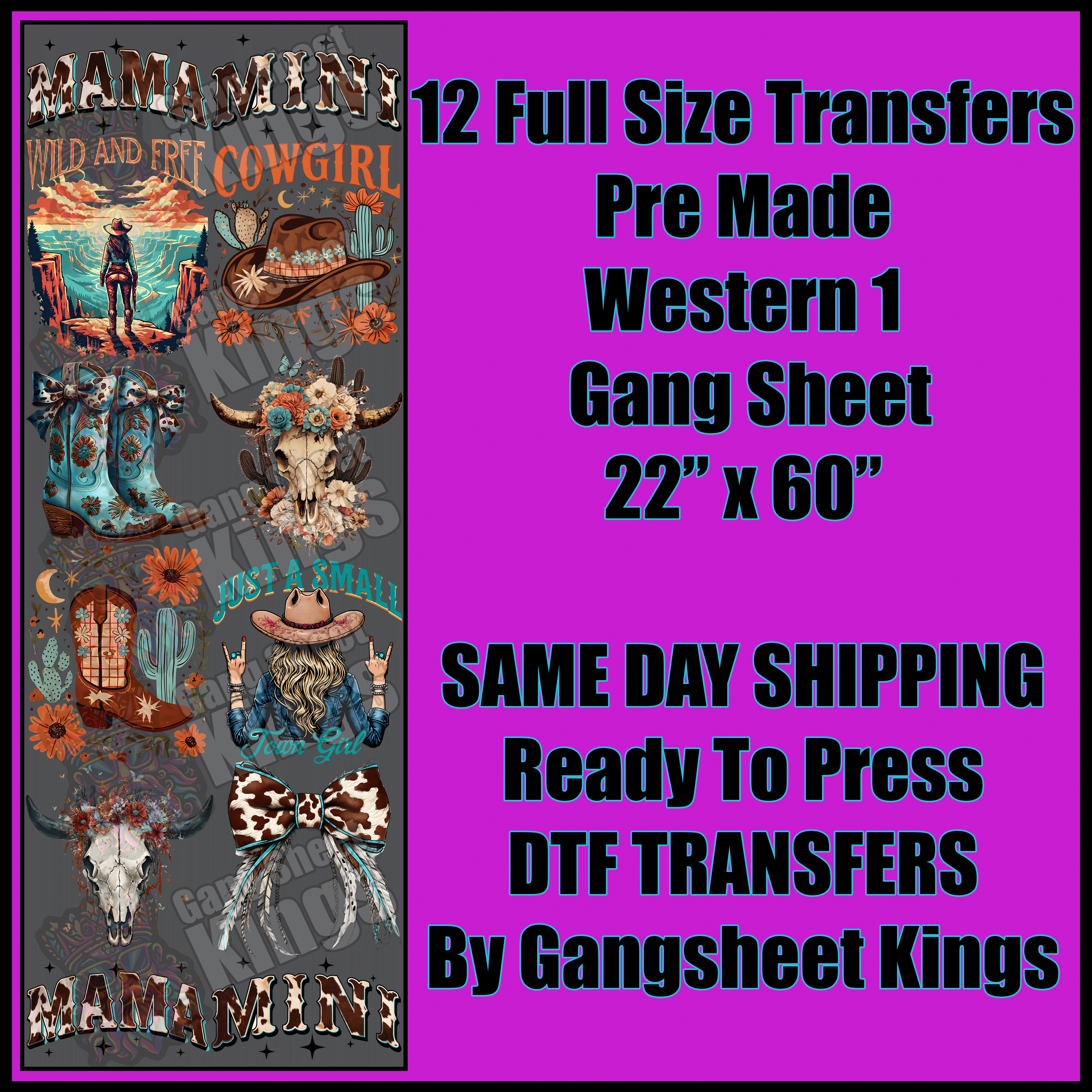 Pre-made gang sheets are professionally designed transfer sheets featuring multiple graphics arranged on a single sheet, ready for heat application onto various surfaces. These sheets are perfect for crafters, small businesses, or anyone looking for high-quality, hassle-free designs. Each gang sheet includes a variety of pre-arranged artwork, saving time and effort by eliminating the need to create your own layout.