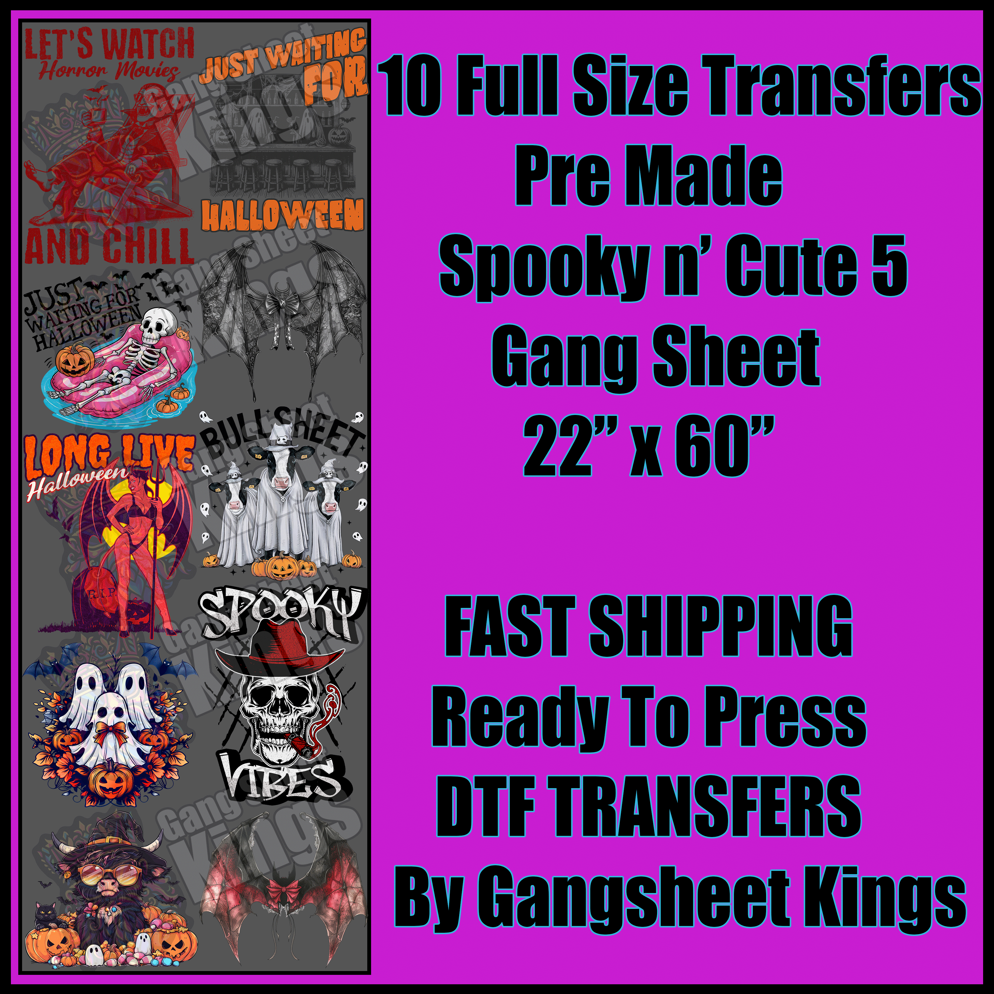 Pre-made gang sheets are professionally designed transfer sheets featuring multiple graphics arranged on a single sheet, ready for heat application onto various surfaces. These sheets are perfect for crafters, small businesses, or anyone looking for high-quality, hassle-free designs. Each gang sheet includes a variety of pre-arranged artwork, saving time and effort by eliminating the need to create your own layout.