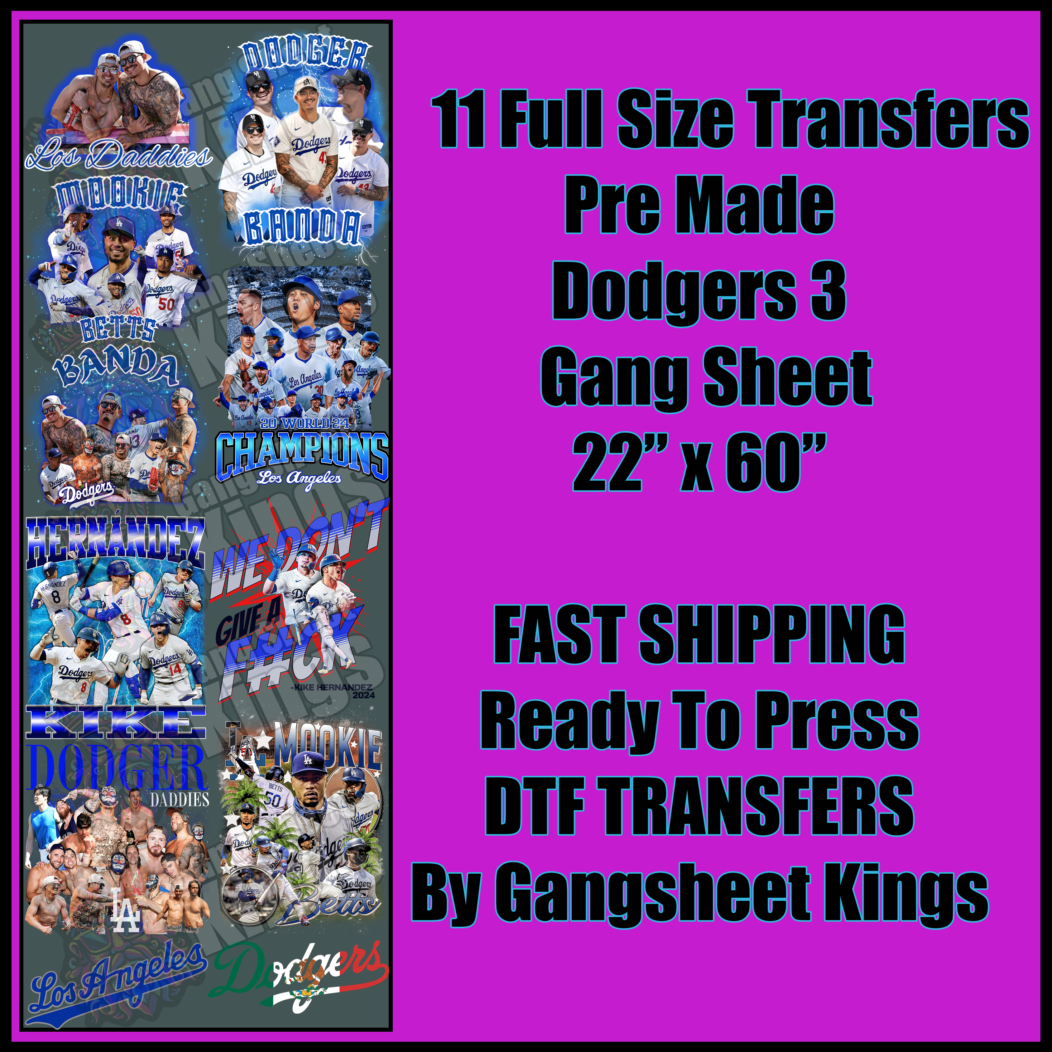 Pre-made gang sheets are professionally designed transfer sheets featuring multiple graphics arranged on a single sheet, ready for heat application onto various surfaces. These sheets are perfect for crafters, small businesses, or anyone looking for high-quality, hassle-free designs. Each gang sheet includes a variety of pre-arranged artwork, saving time and effort by eliminating the need to create your own layout.