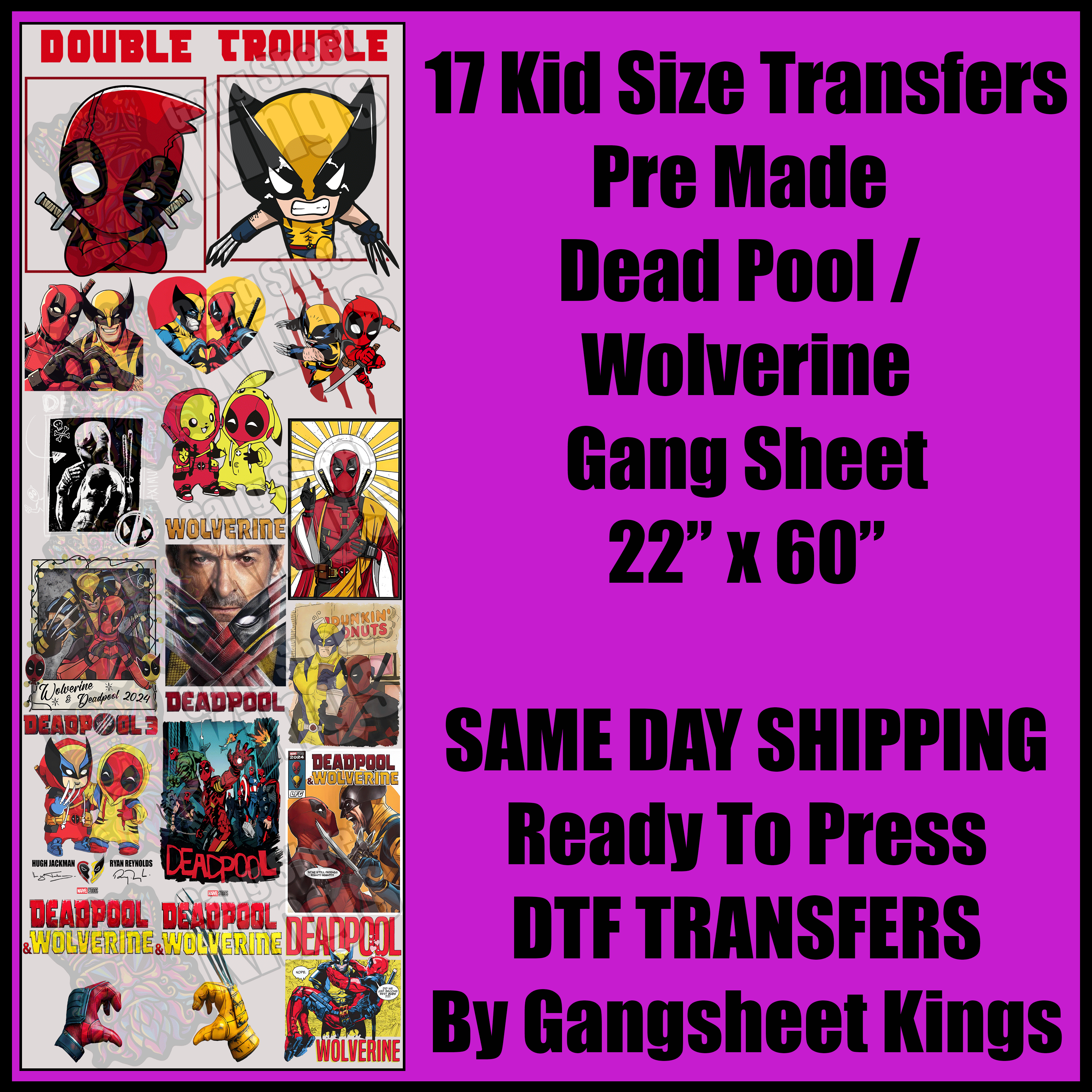 Pre-made gang sheets are professionally designed transfer sheets featuring multiple graphics arranged on a single sheet, ready for heat application onto various surfaces. These sheets are perfect for crafters, small businesses, or anyone looking for high-quality, hassle-free designs. Each gang sheet includes a variety of pre-arranged artwork, saving time and effort by eliminating the need to create your own layout.