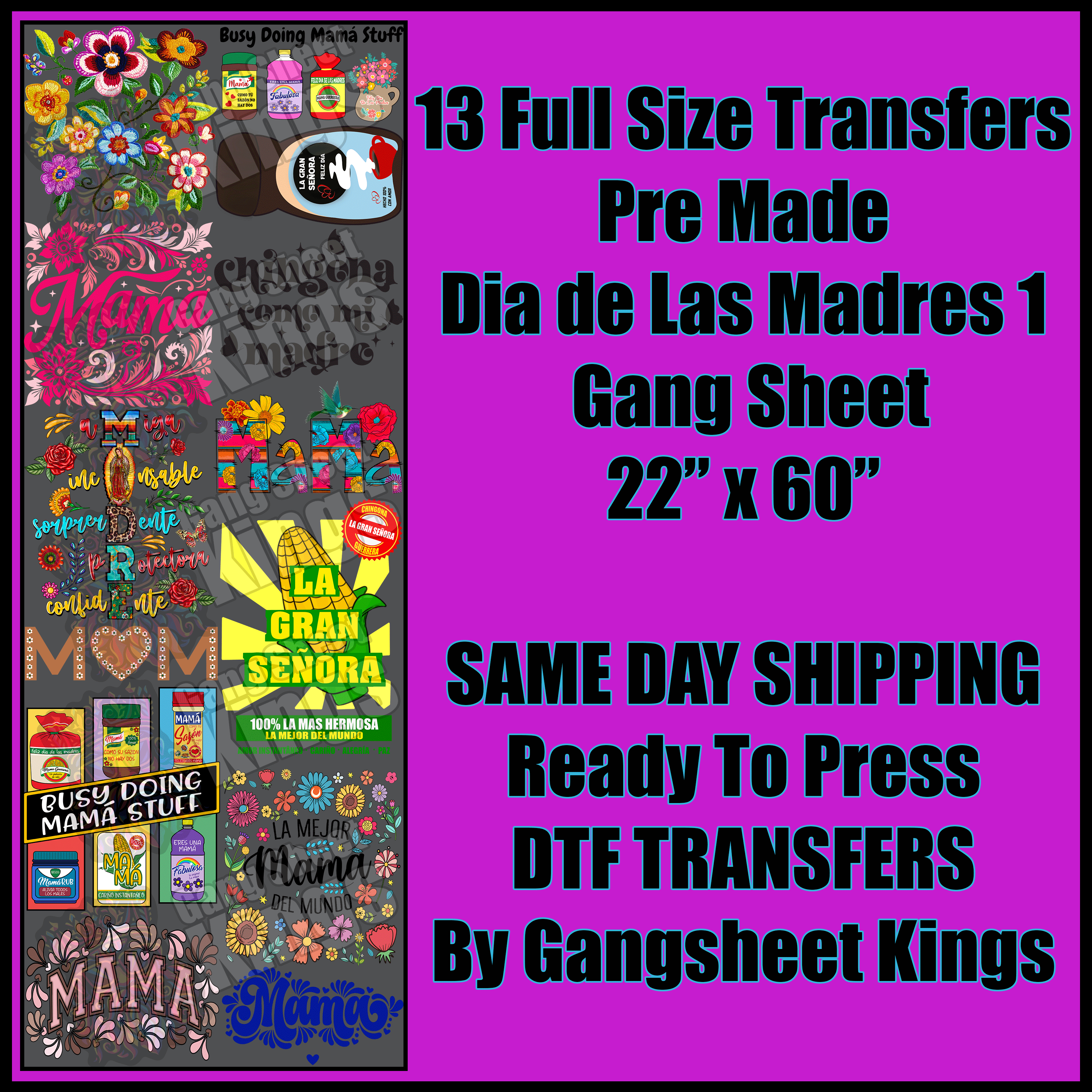 Pre-made gang sheets are professionally designed transfer sheets featuring multiple graphics arranged on a single sheet, ready for heat application onto various surfaces. These sheets are perfect for crafters, small businesses, or anyone looking for high-quality, hassle-free designs. Each gang sheet includes a variety of pre-arranged artwork, saving time and effort by eliminating the need to create your own layout.