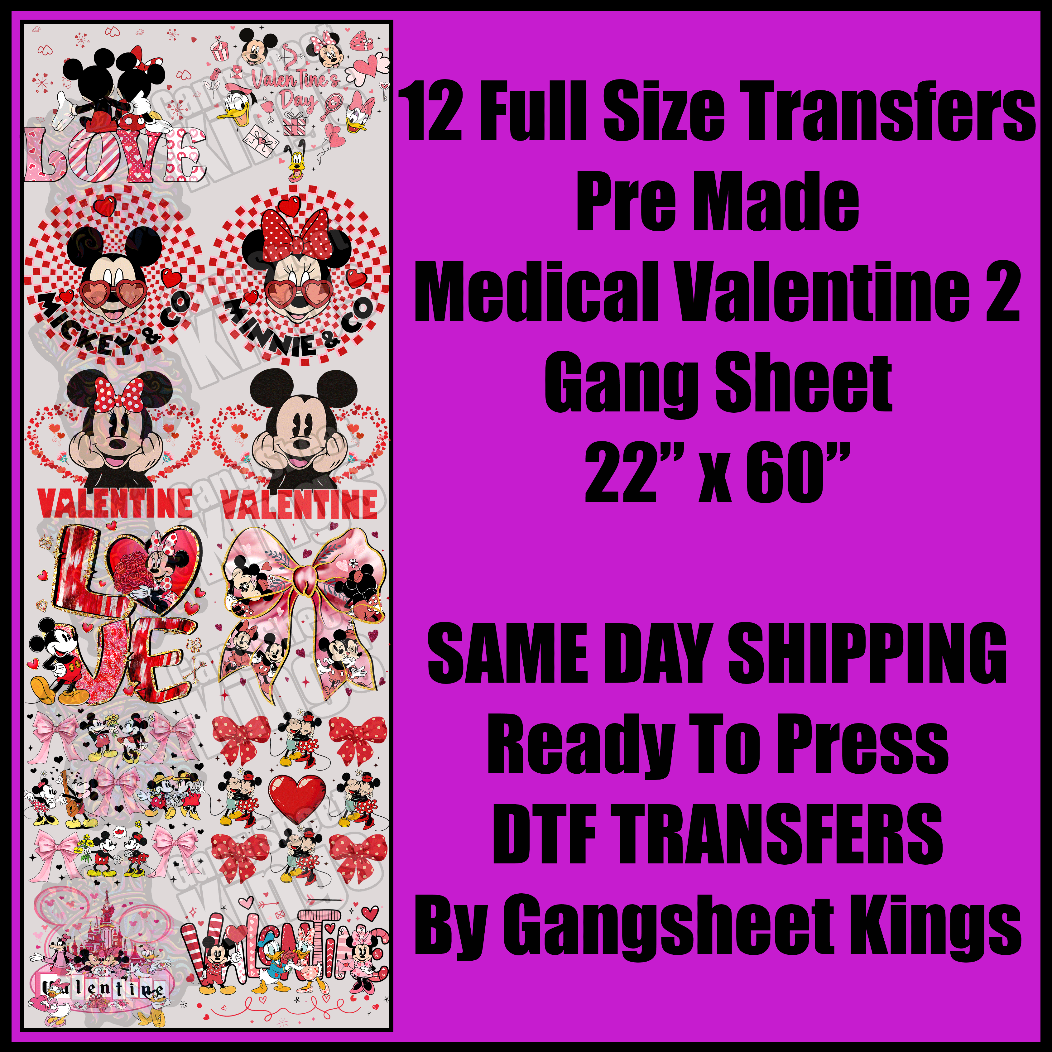 Pre-made gang sheets are professionally designed transfer sheets featuring multiple graphics arranged on a single sheet, ready for heat application onto various surfaces. These sheets are perfect for crafters, small businesses, or anyone looking for high-quality, hassle-free designs. Each gang sheet includes a variety of pre-arranged artwork, saving time and effort by eliminating the need to create your own layout.