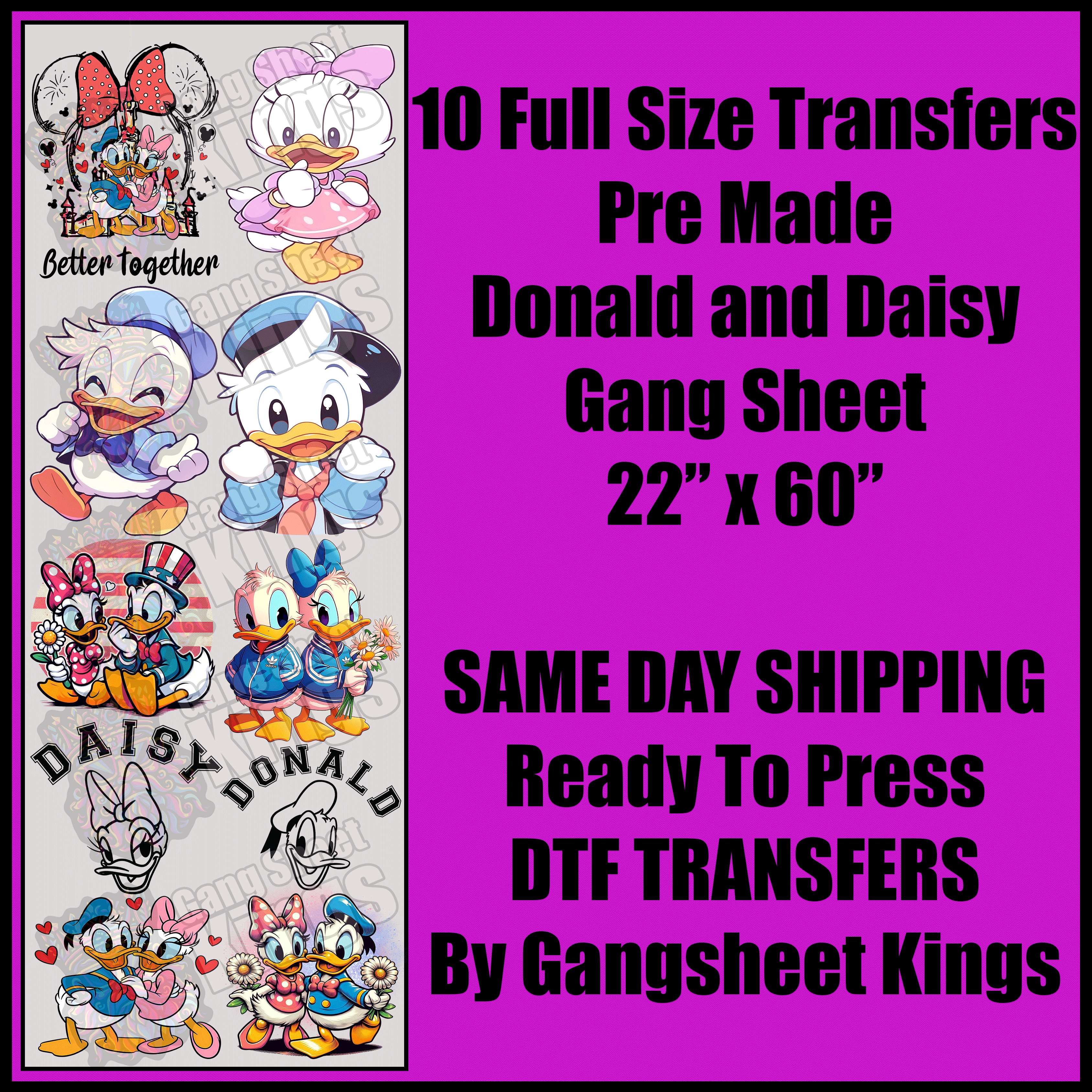 Pre-made gang sheets are professionally designed transfer sheets featuring multiple graphics arranged on a single sheet, ready for heat application onto various surfaces. These sheets are perfect for crafters, small businesses, or anyone looking for high-quality, hassle-free designs. Each gang sheet includes a variety of pre-arranged artwork, saving time and effort by eliminating the need to create your own layout.