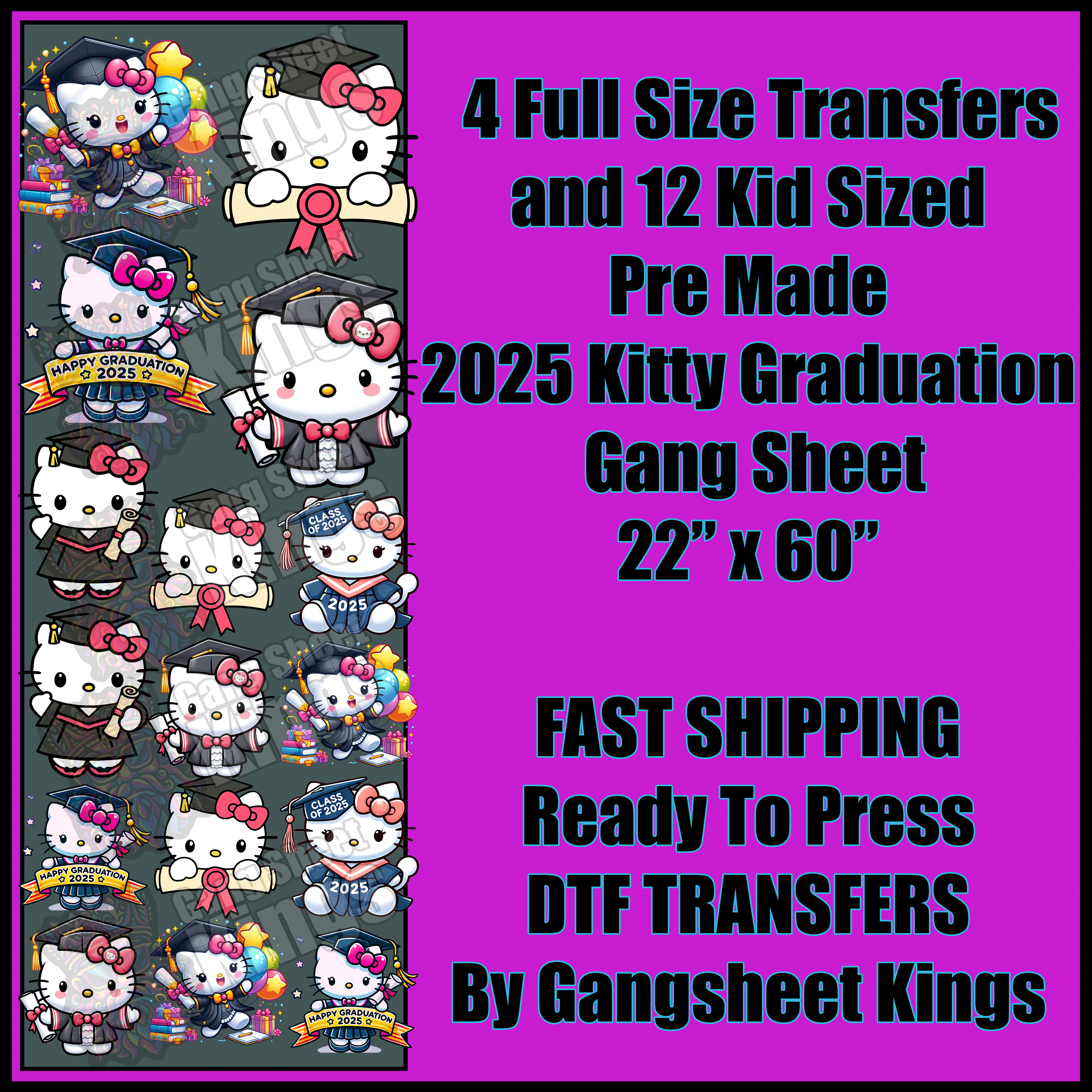 Hello Kitty Graduation Gangsheet