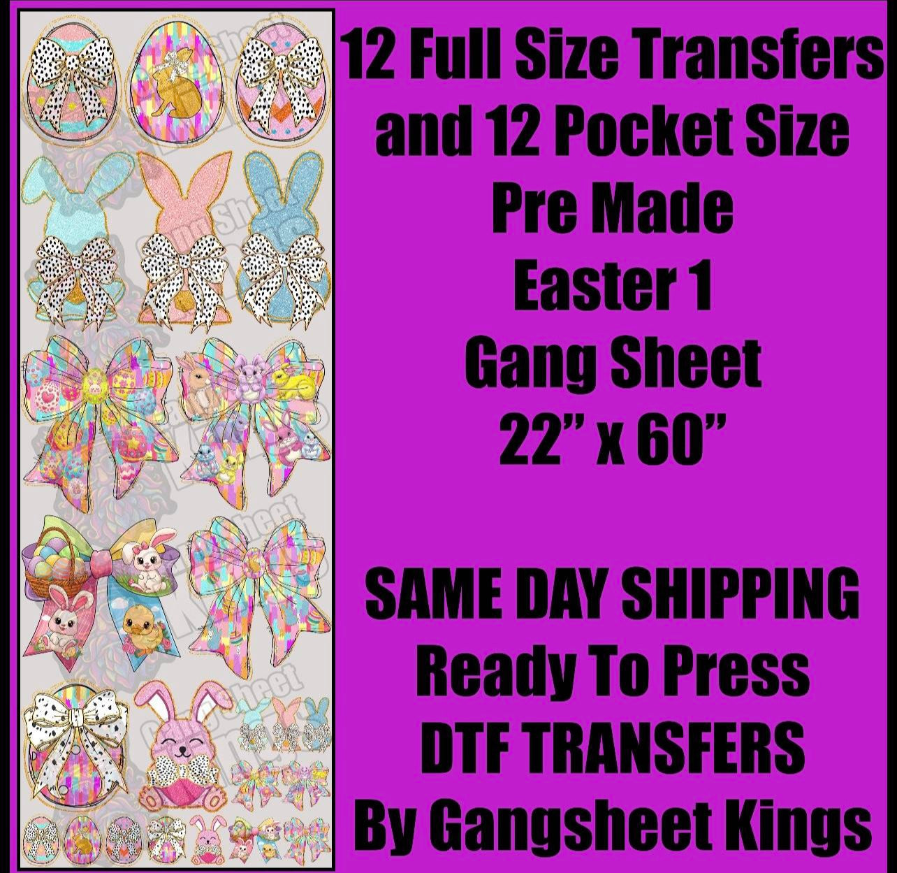Pre-made gang sheets are professionally designed transfer sheets featuring multiple graphics arranged on a single sheet, ready for heat application onto various surfaces. These sheets are perfect for crafters, small businesses, or anyone looking for high-quality, hassle-free designs. Each gang sheet includes a variety of pre-arranged artwork, saving time and effort by eliminating the need to create your own layout.