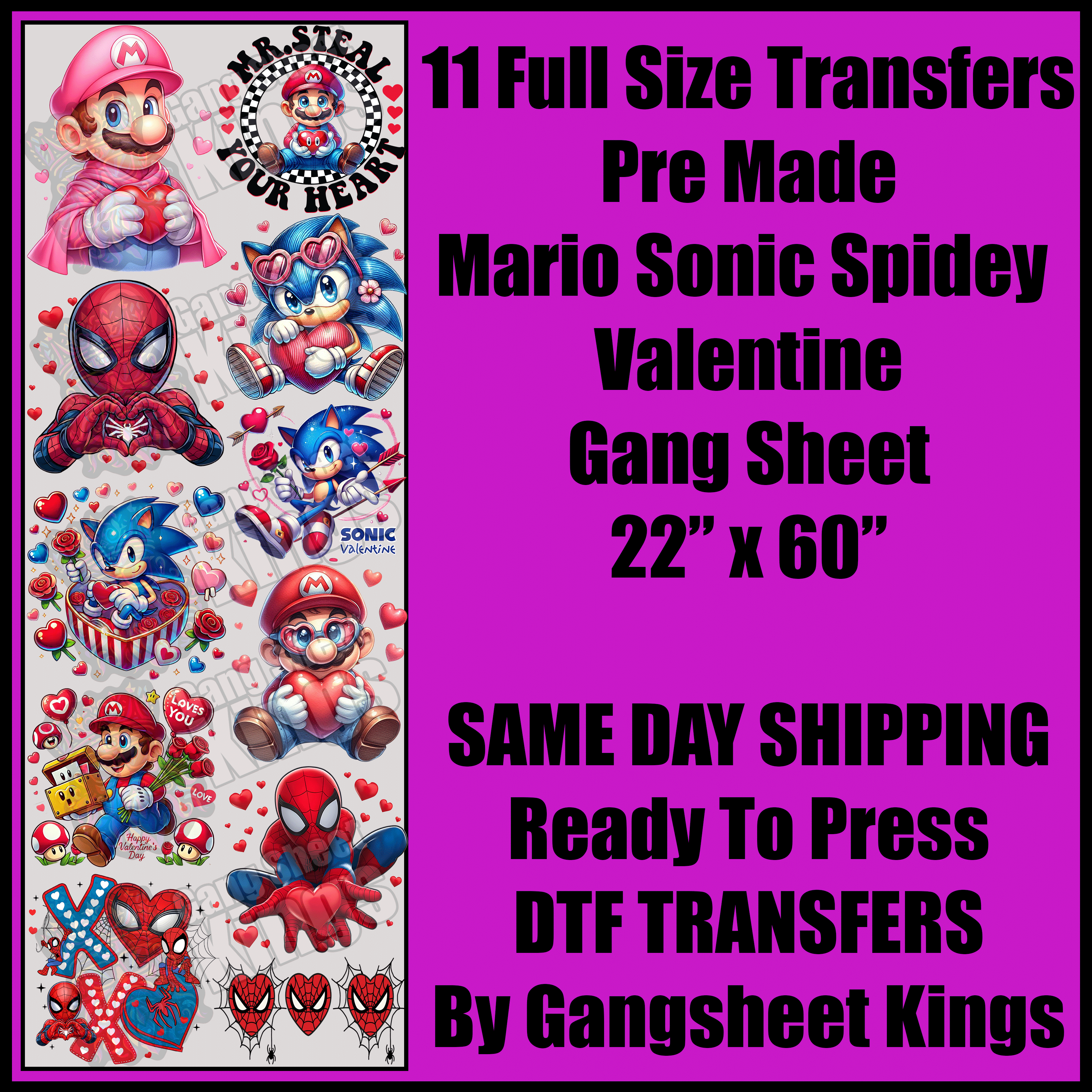 Full Size Mario, Sonic, Spiderman Valentine Gang Sheet