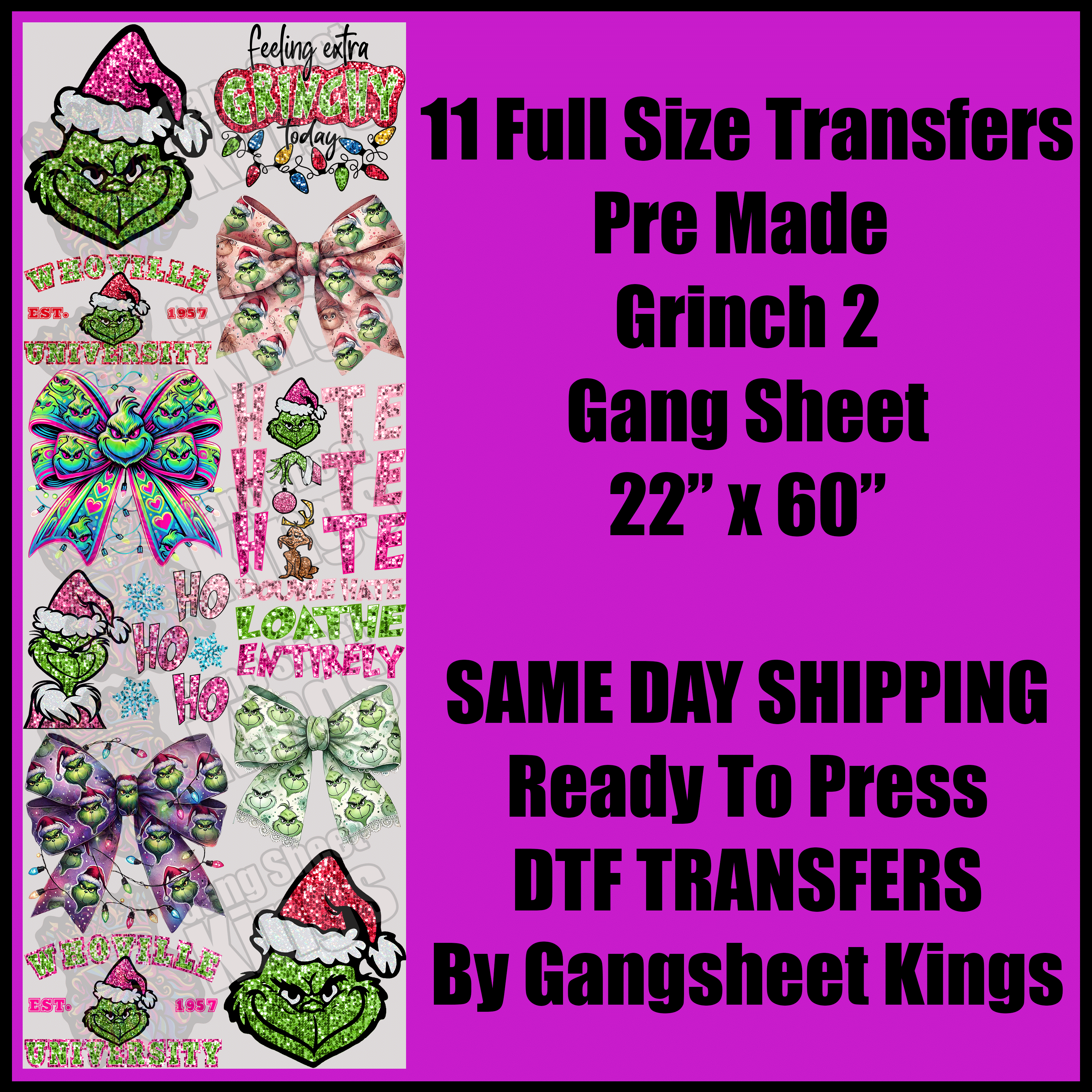 Pre-made gang sheets are professionally designed transfer sheets featuring multiple graphics arranged on a single sheet, ready for heat application onto various surfaces. These sheets are perfect for crafters, small businesses, or anyone looking for high-quality, hassle-free designs. Each gang sheet includes a variety of pre-arranged artwork, saving time and effort by eliminating the need to create your own layout.