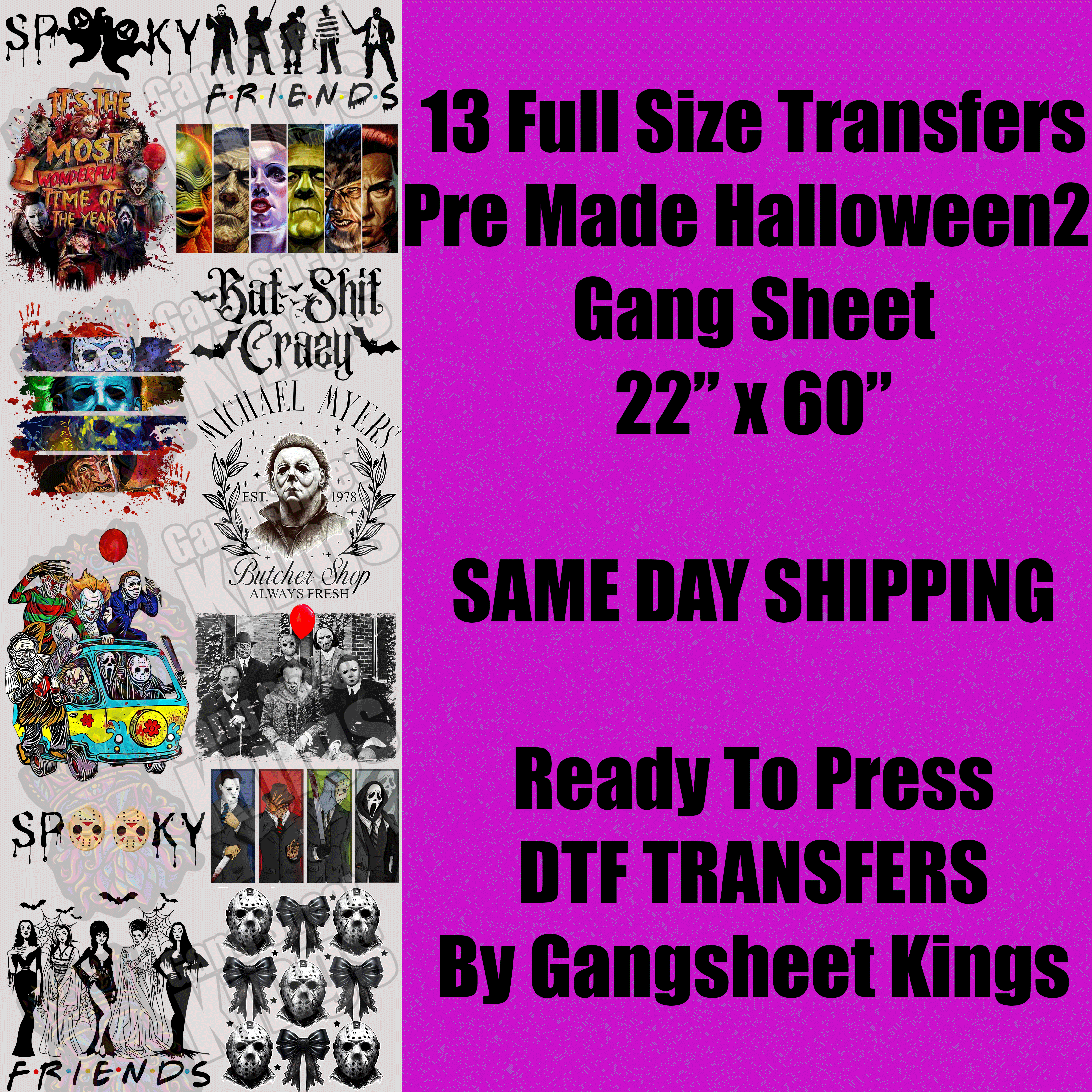 Pre-made gang sheets are professionally designed transfer sheets featuring multiple graphics arranged on a single sheet, ready for heat application onto various surfaces. These sheets are perfect for crafters, small businesses, or anyone looking for high-quality, hassle-free designs. Each gang sheet includes a variety of pre-arranged artwork, saving time and effort by eliminating the need to create your own layout.