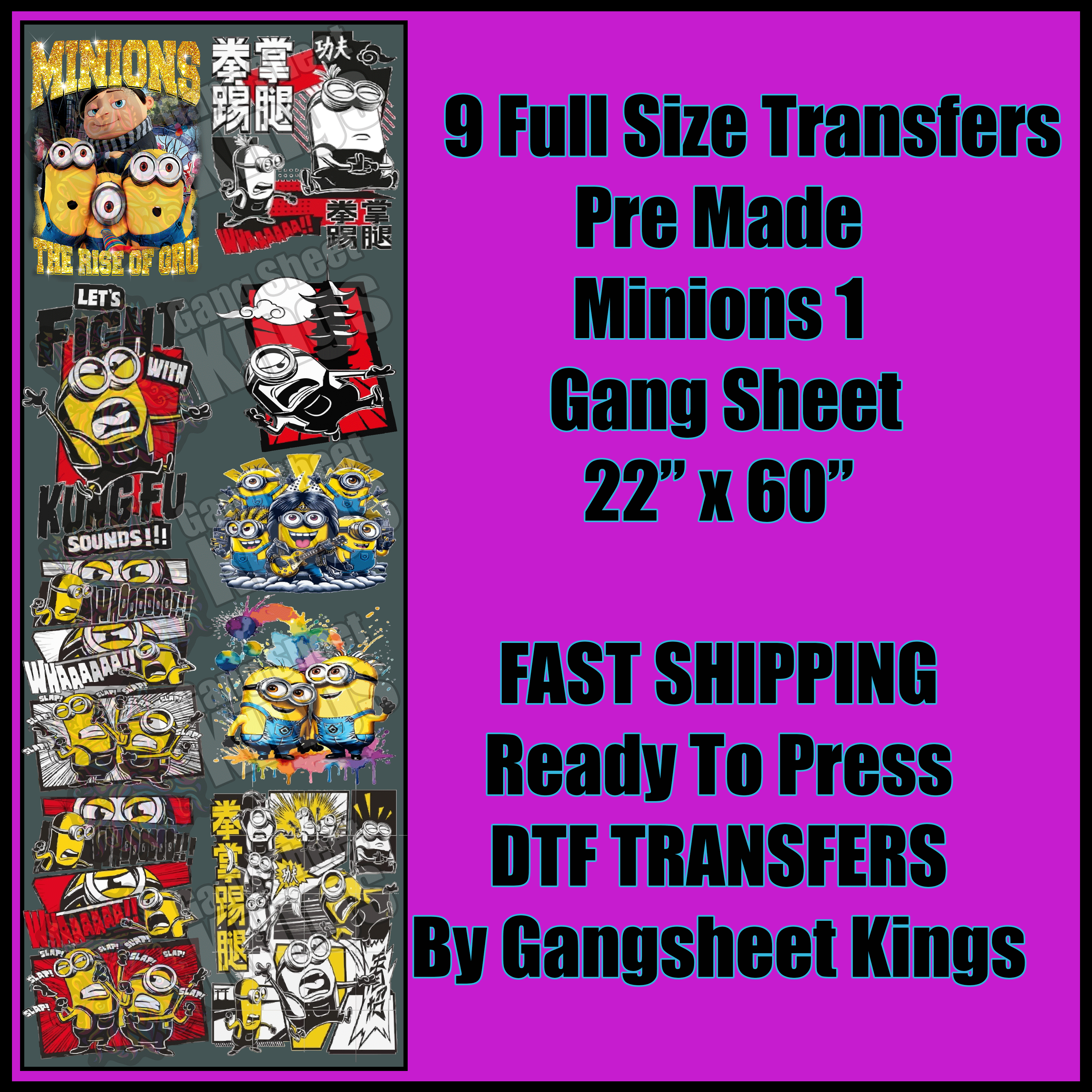 Pre-made gang sheets are professionally designed transfer sheets featuring multiple graphics arranged on a single sheet, ready for heat application onto various surfaces. These sheets are perfect for crafters, small businesses, or anyone looking for high-quality, hassle-free designs. Each gang sheet includes a variety of pre-arranged artwork, saving time and effort by eliminating the need to create your own layout.