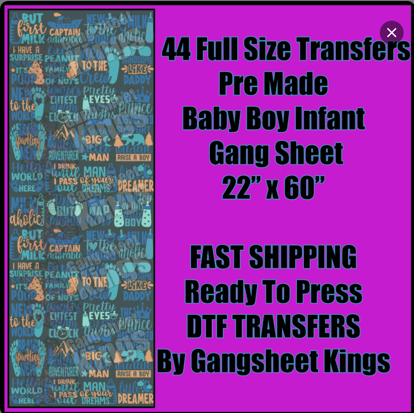 Pre-made gang sheets are professionally designed transfer sheets featuring multiple graphics arranged on a single sheet, ready for heat application onto various surfaces. These sheets are perfect for crafters, small businesses, or anyone looking for high-quality, hassle-free designs. Each gang sheet includes a variety of pre-arranged artwork, saving time and effort by eliminating the need to create your own layout.