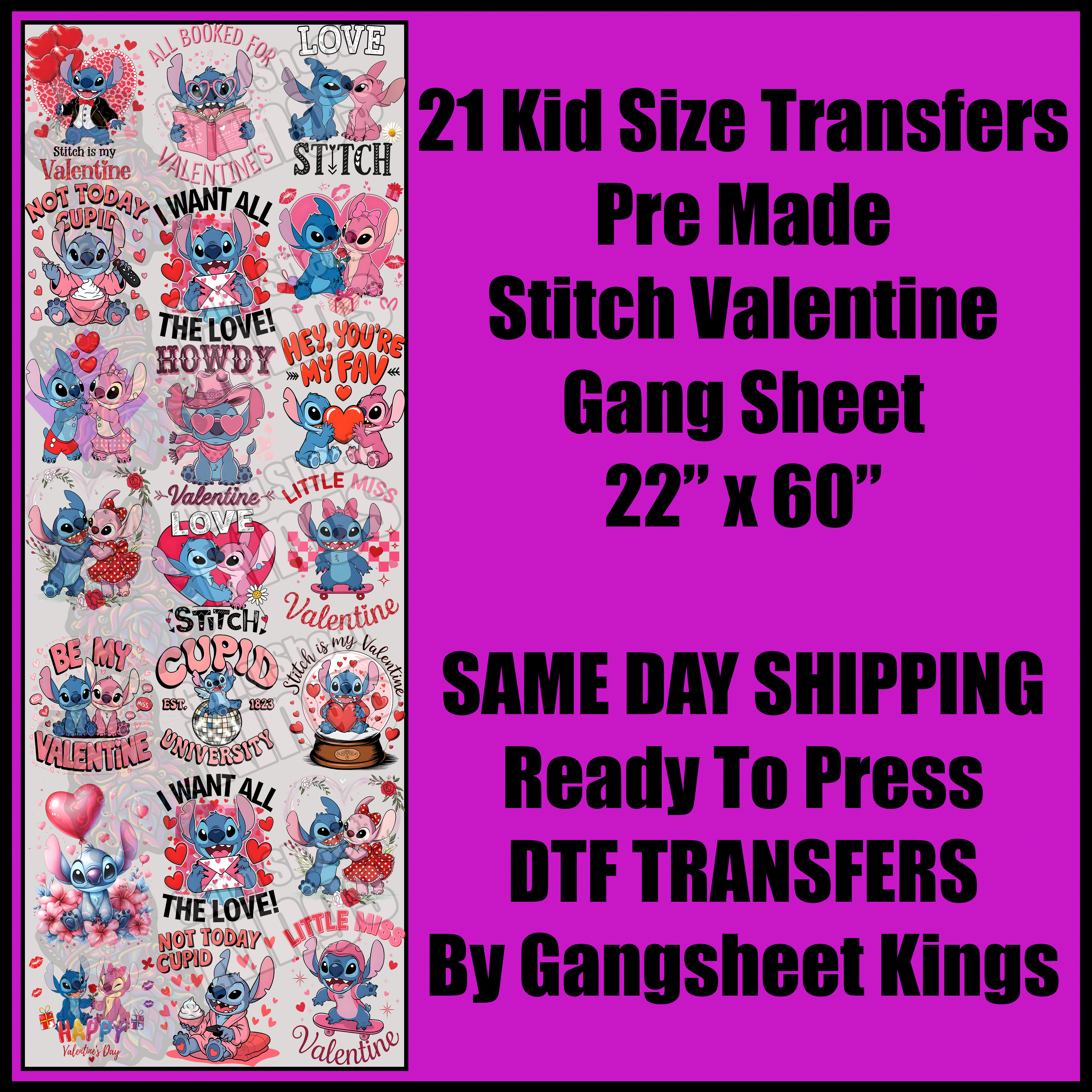 Kid Sized Stitch Valentine Gang Sheet