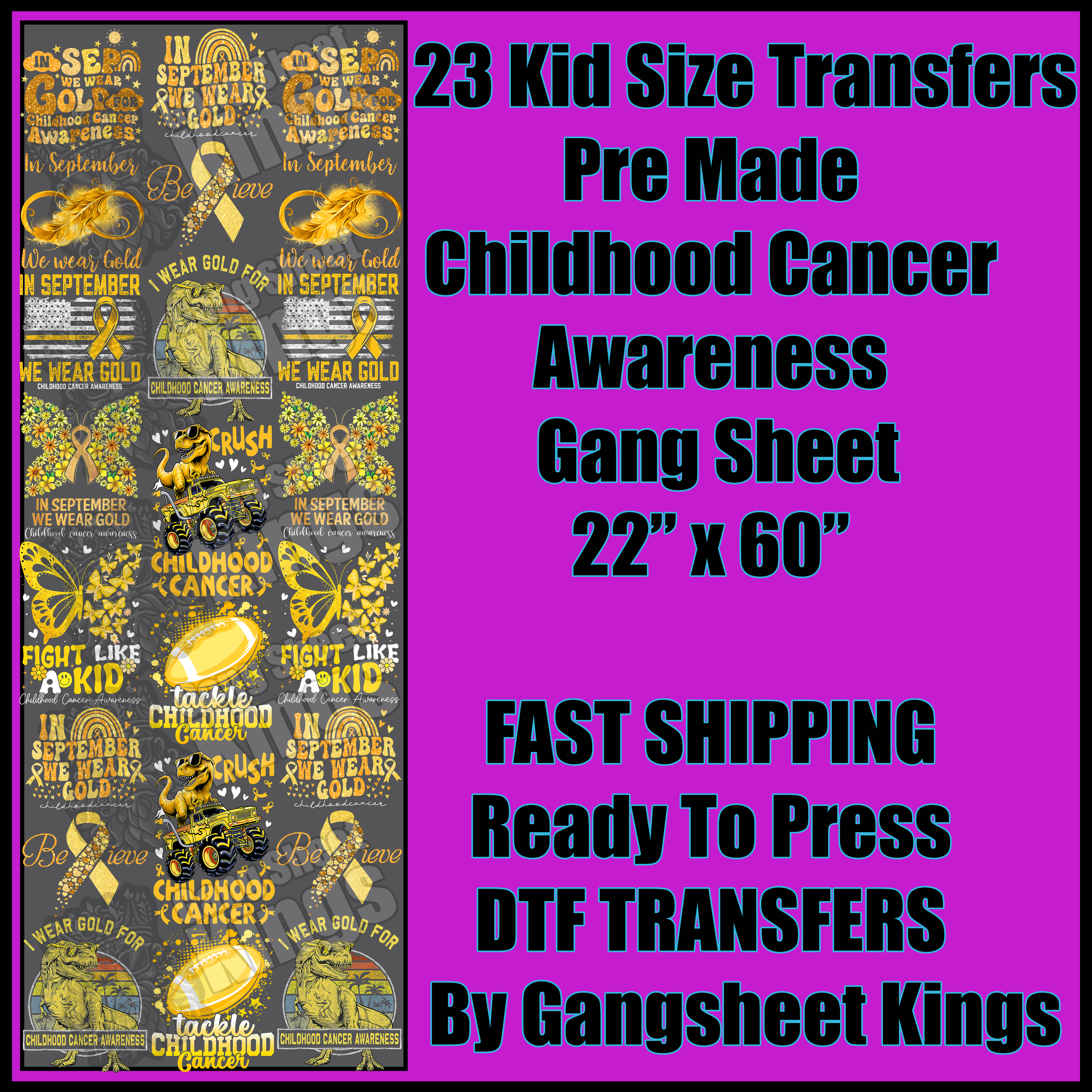 Kids Childhood Cancer Awareness Gangsheet