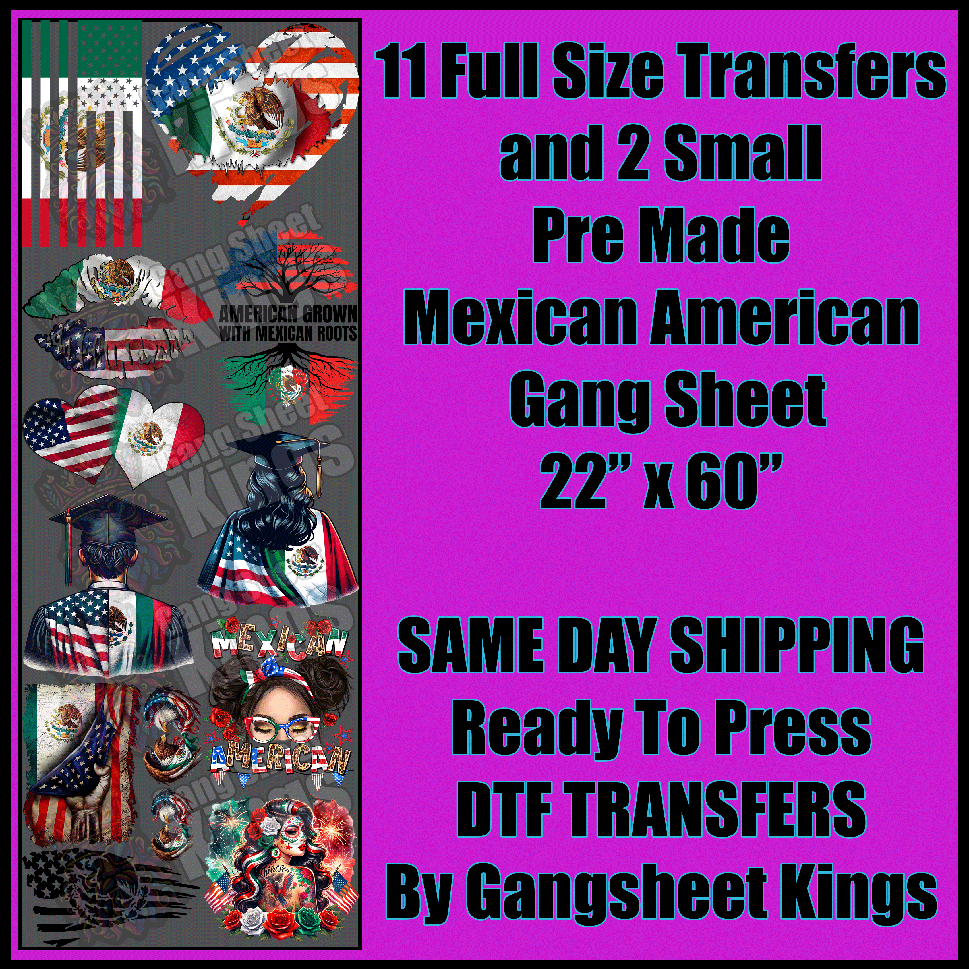 Pre-made gang sheets are professionally designed transfer sheets featuring multiple graphics arranged on a single sheet, ready for heat application onto various surfaces. These sheets are perfect for crafters, small businesses, or anyone looking for high-quality, hassle-free designs. Each gang sheet includes a variety of pre-arranged artwork, saving time and effort by eliminating the need to create your own layout.