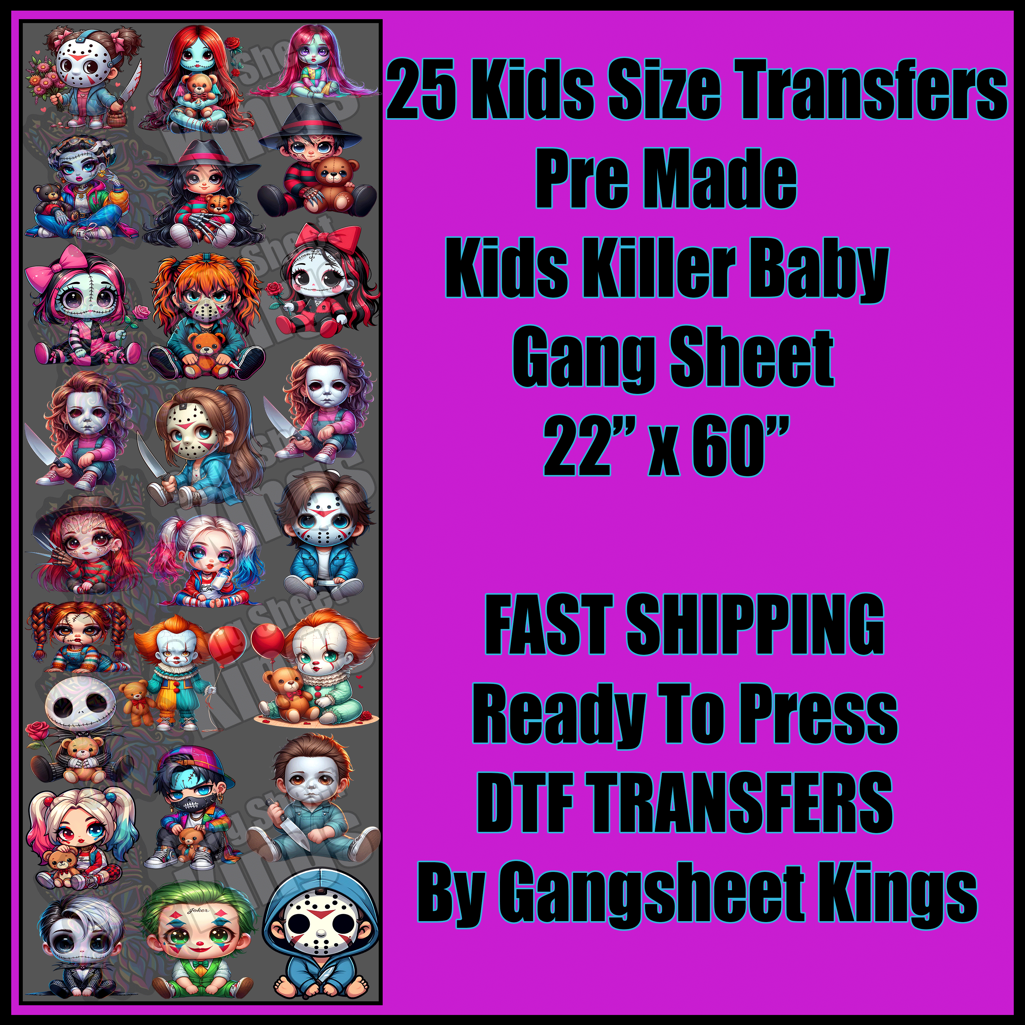 Pre-made gang sheets are professionally designed transfer sheets featuring multiple graphics arranged on a single sheet, ready for heat application onto various surfaces. These sheets are perfect for crafters, small businesses, or anyone looking for high-quality, hassle-free designs. Each gang sheet includes a variety of pre-arranged artwork, saving time and effort by eliminating the need to create your own layout.