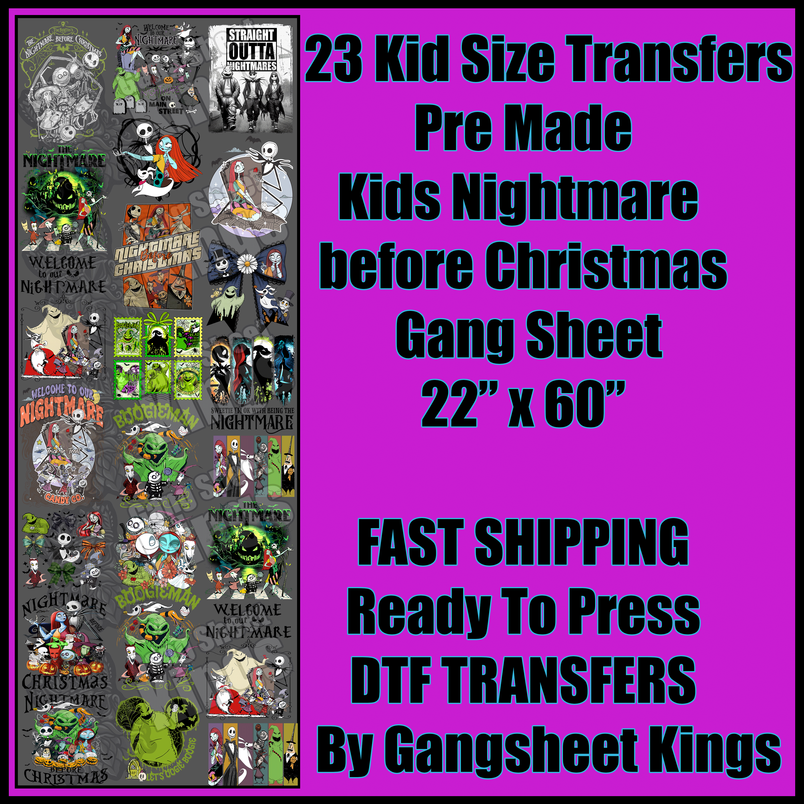 Pre-made gang sheets are professionally designed transfer sheets featuring multiple graphics arranged on a single sheet, ready for heat application onto various surfaces. These sheets are perfect for crafters, small businesses, or anyone looking for high-quality, hassle-free designs. Each gang sheet includes a variety of pre-arranged artwork, saving time and effort by eliminating the need to create your own layout.