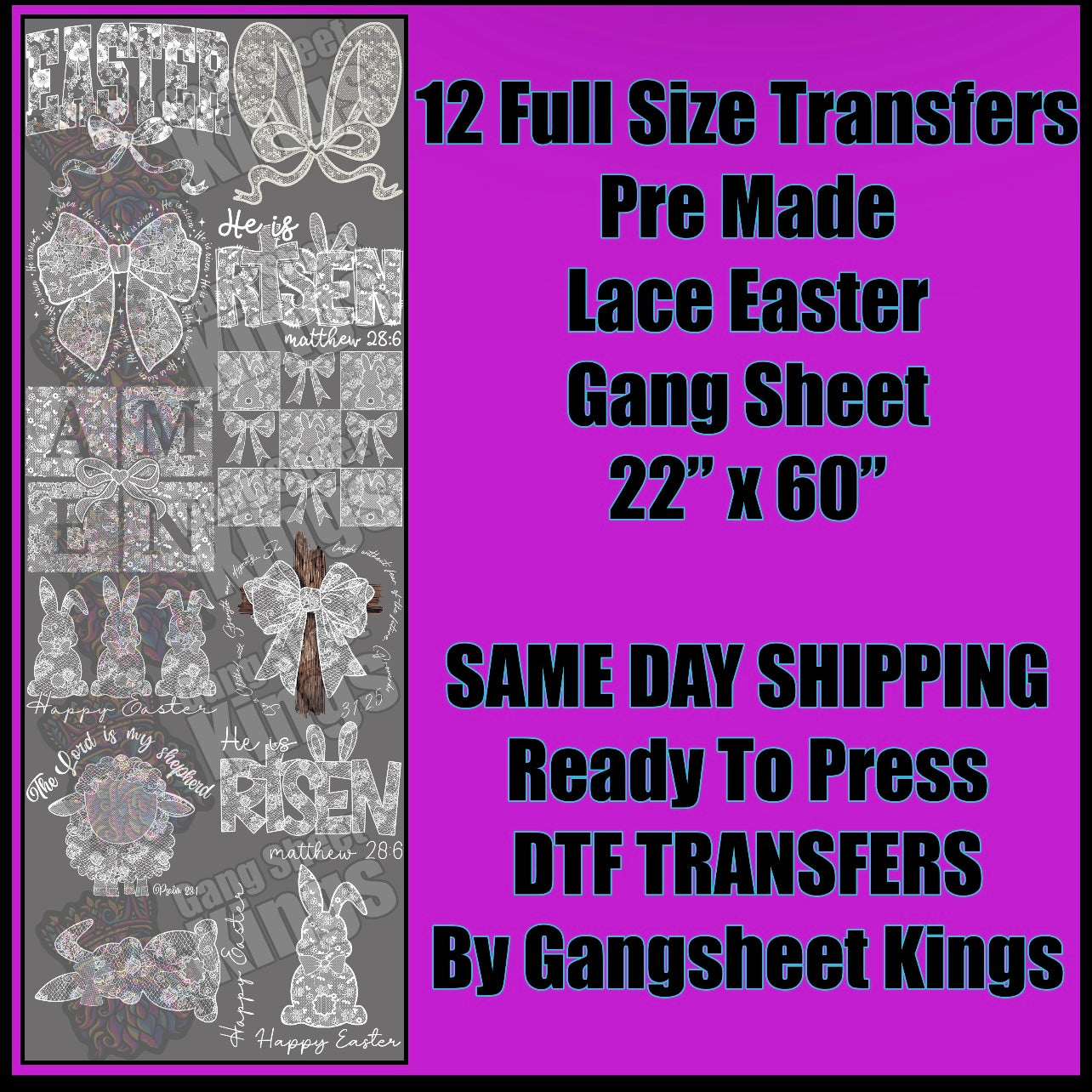 Pre-made gang sheets are professionally designed transfer sheets featuring multiple graphics arranged on a single sheet, ready for heat application onto various surfaces. These sheets are perfect for crafters, small businesses, or anyone looking for high-quality, hassle-free designs. Each gang sheet includes a variety of pre-arranged artwork, saving time and effort by eliminating the need to create your own layout.
