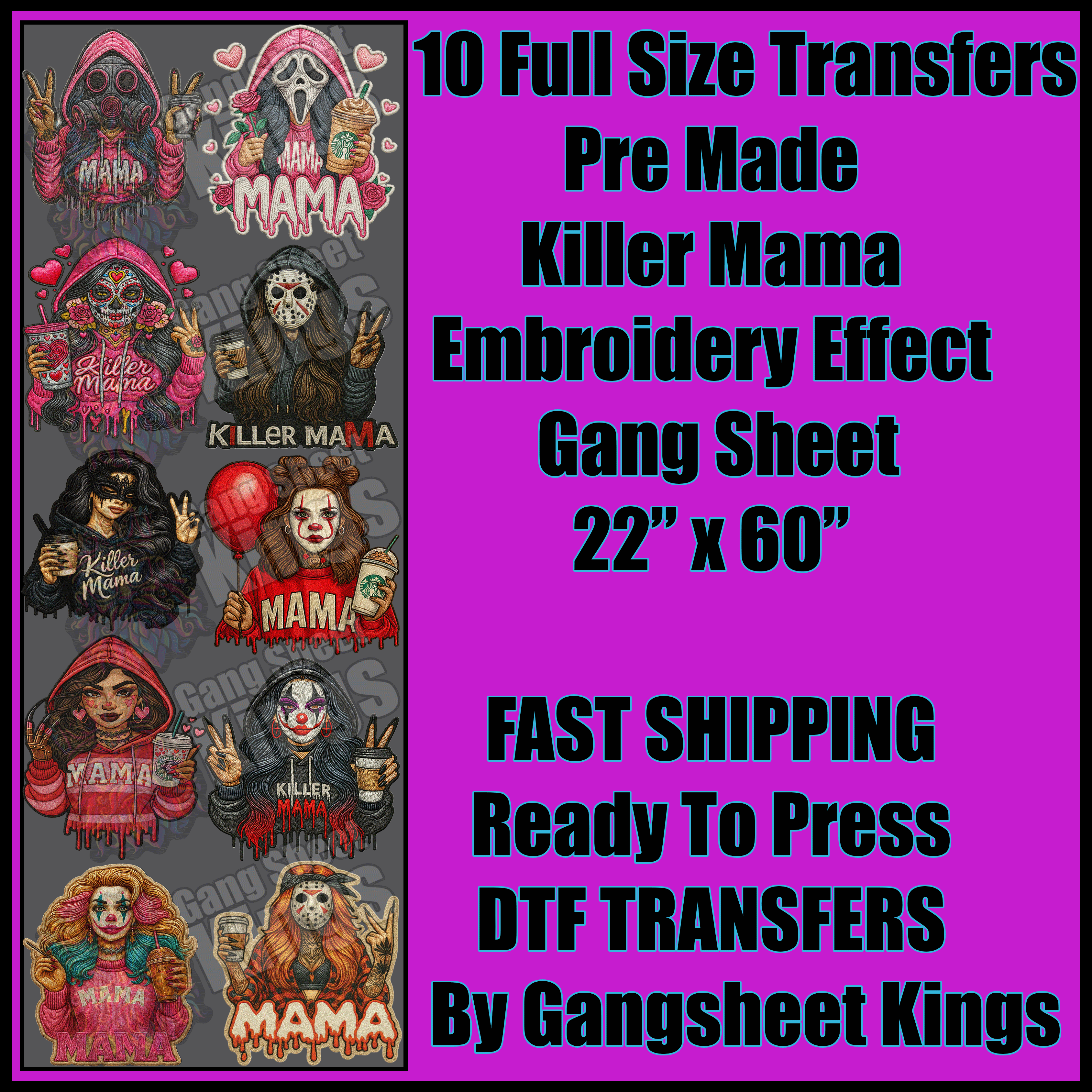 Killer Mama Embroidery Effect Halloween Gangsheet