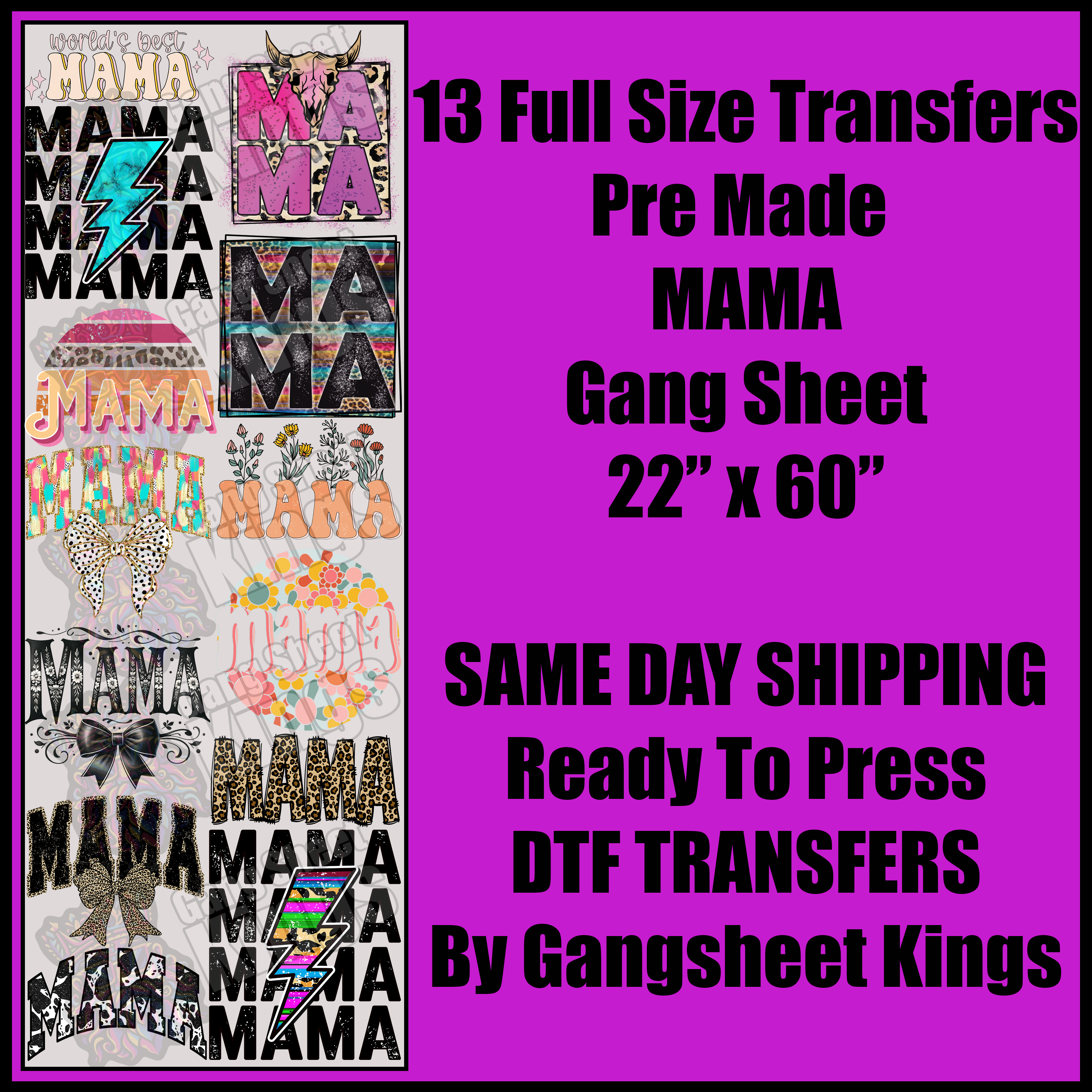 Pre-made gang sheets are a cost-effective solution for bulk orders, maximizing space while minimizing production time. With no design experience needed, they make customization easy and accessible for everyone!
