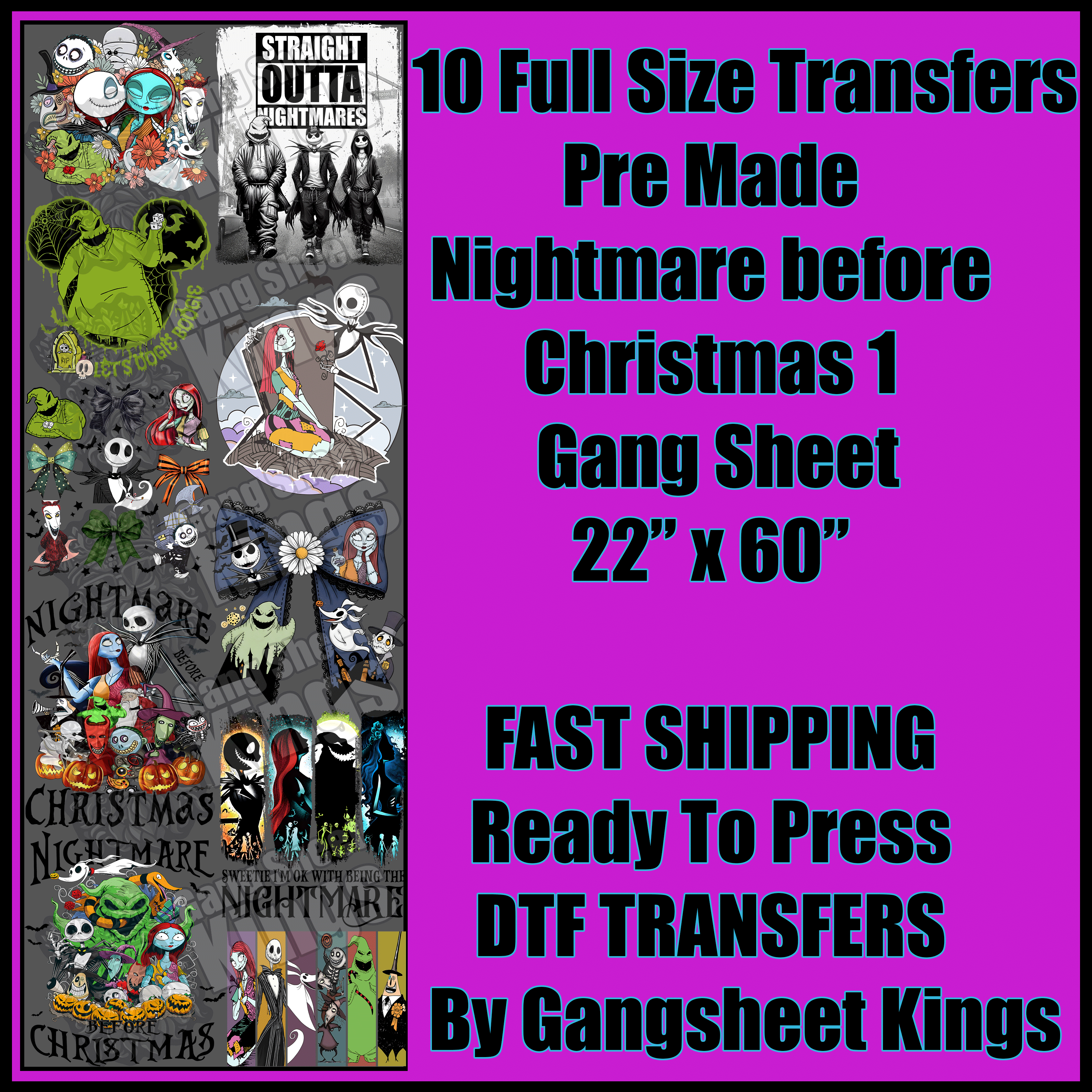Pre-made gang sheets are professionally designed transfer sheets featuring multiple graphics arranged on a single sheet, ready for heat application onto various surfaces. These sheets are perfect for crafters, small businesses, or anyone looking for high-quality, hassle-free designs. Each gang sheet includes a variety of pre-arranged artwork, saving time and effort by eliminating the need to create your own layout.