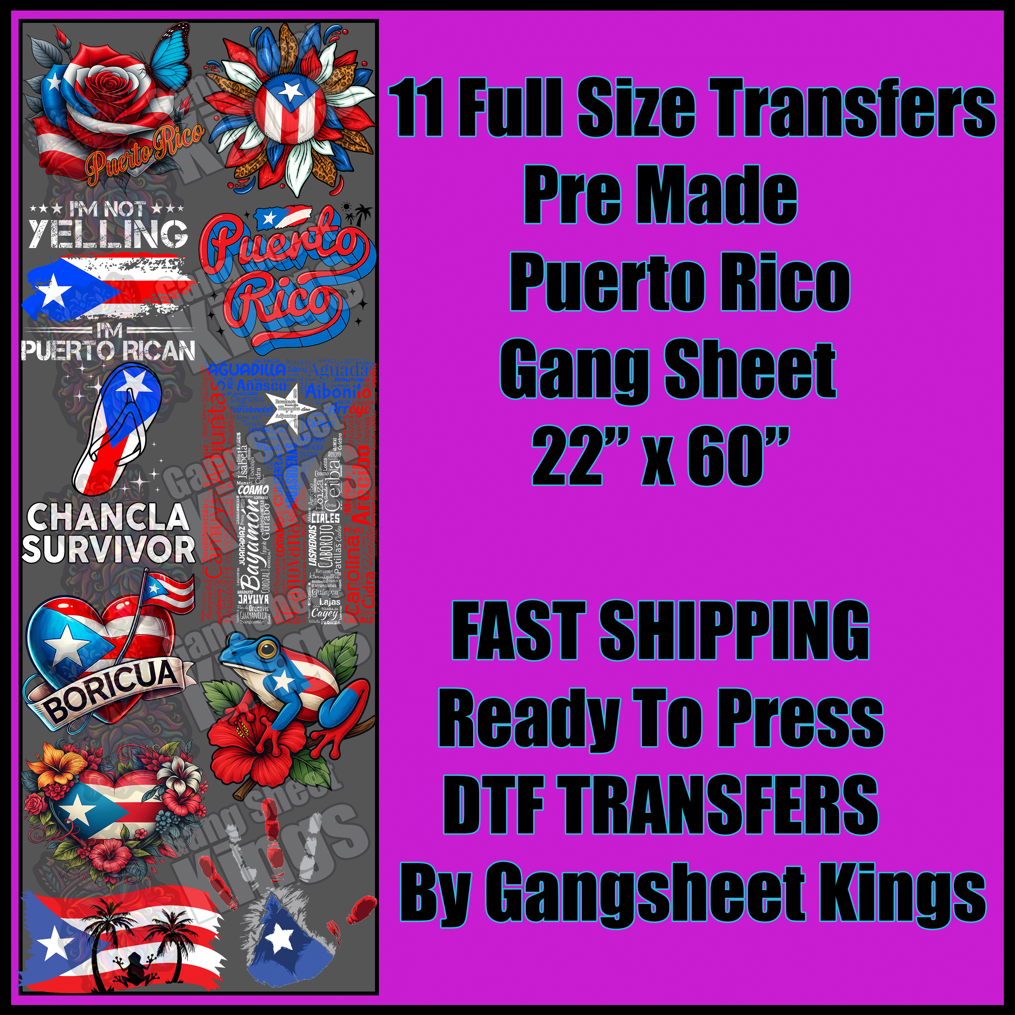 Pre-made gang sheets are professionally designed transfer sheets featuring multiple graphics arranged on a single sheet, ready for heat application onto various surfaces. These sheets are perfect for crafters, small businesses, or anyone looking for high-quality, hassle-free designs. Each gang sheet includes a variety of pre-arranged artwork, saving time and effort by eliminating the need to create your own layout.