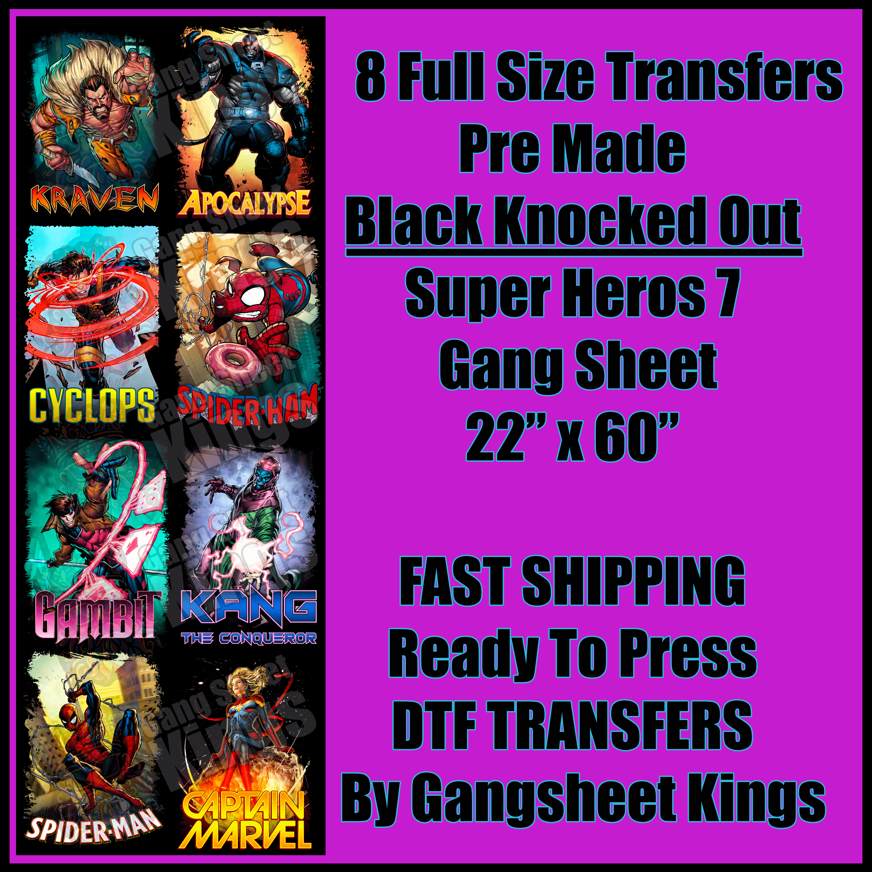 Pre-made gang sheets are professionally designed transfer sheets featuring multiple graphics arranged on a single sheet, ready for heat application onto various surfaces. These sheets are perfect for crafters, small businesses, or anyone looking for high-quality, hassle-free designs. Each gang sheet includes a variety of pre-arranged artwork, saving time and effort by eliminating the need to create your own layout.