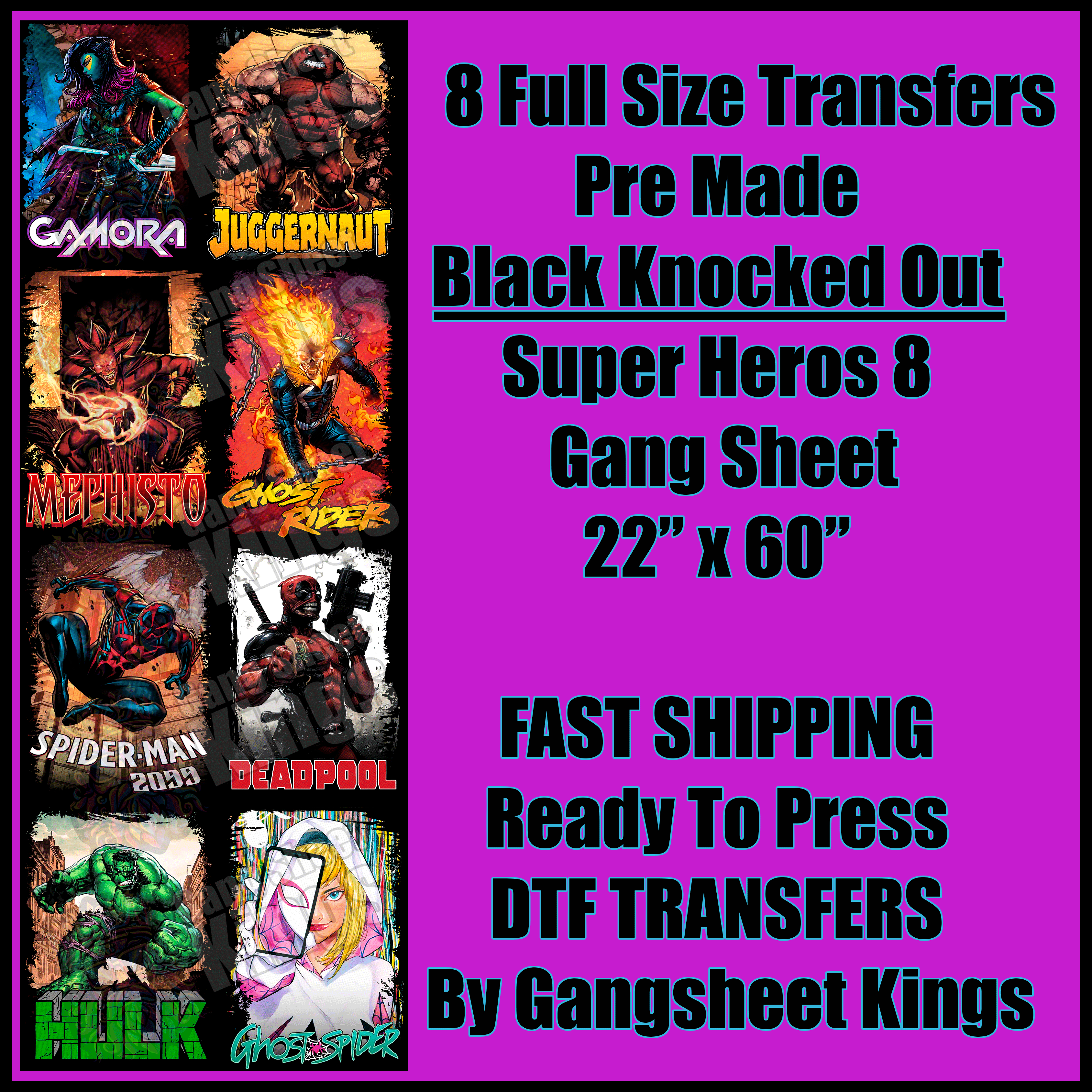 Pre-made gang sheets are professionally designed transfer sheets featuring multiple graphics arranged on a single sheet, ready for heat application onto various surfaces. These sheets are perfect for crafters, small businesses, or anyone looking for high-quality, hassle-free designs. Each gang sheet includes a variety of pre-arranged artwork, saving time and effort by eliminating the need to create your own layout.
