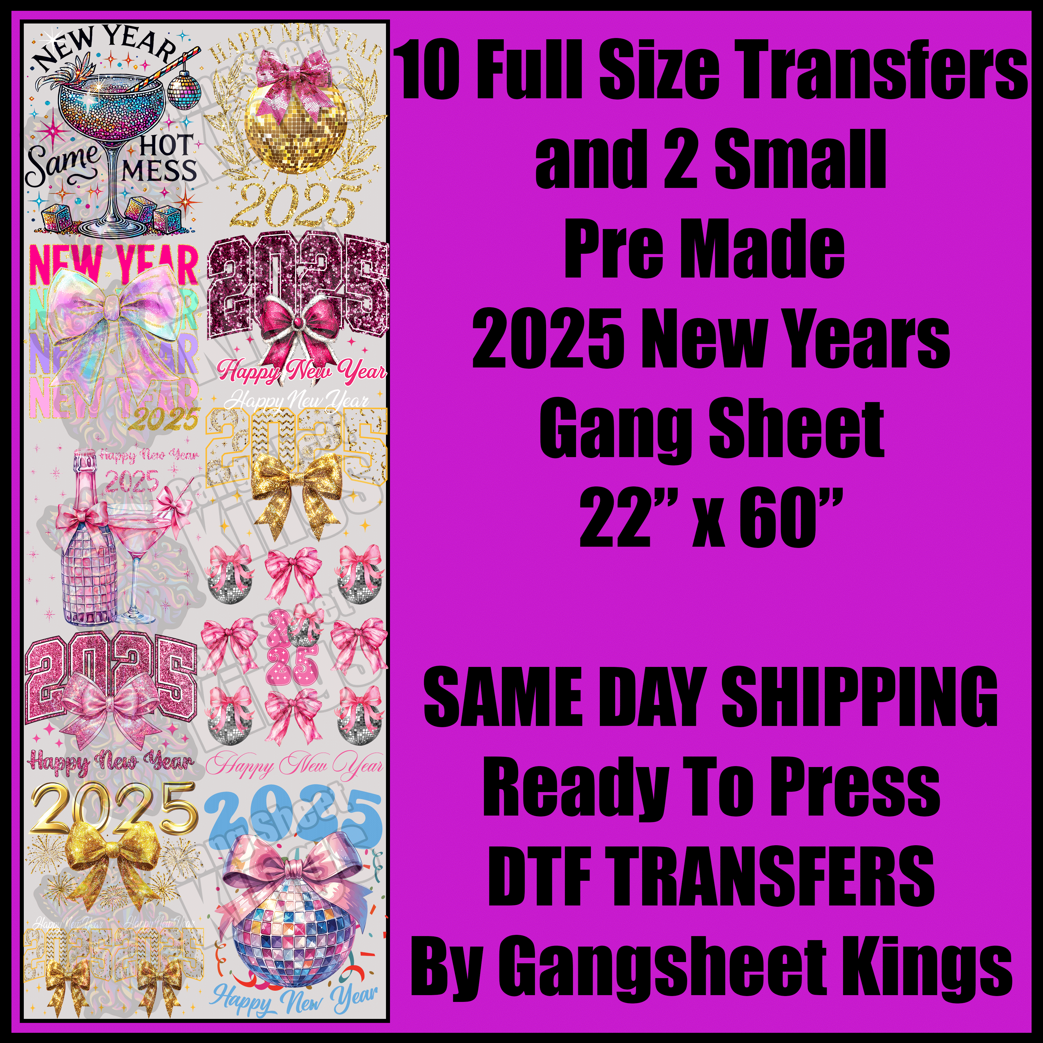 Pre-made gang sheets are professionally designed transfer sheets featuring multiple graphics arranged on a single sheet, ready for heat application onto various surfaces. These sheets are perfect for crafters, small businesses, or anyone looking for high-quality, hassle-free designs. Each gang sheet includes a variety of pre-arranged artwork, saving time and effort by eliminating the need to create your own layout.