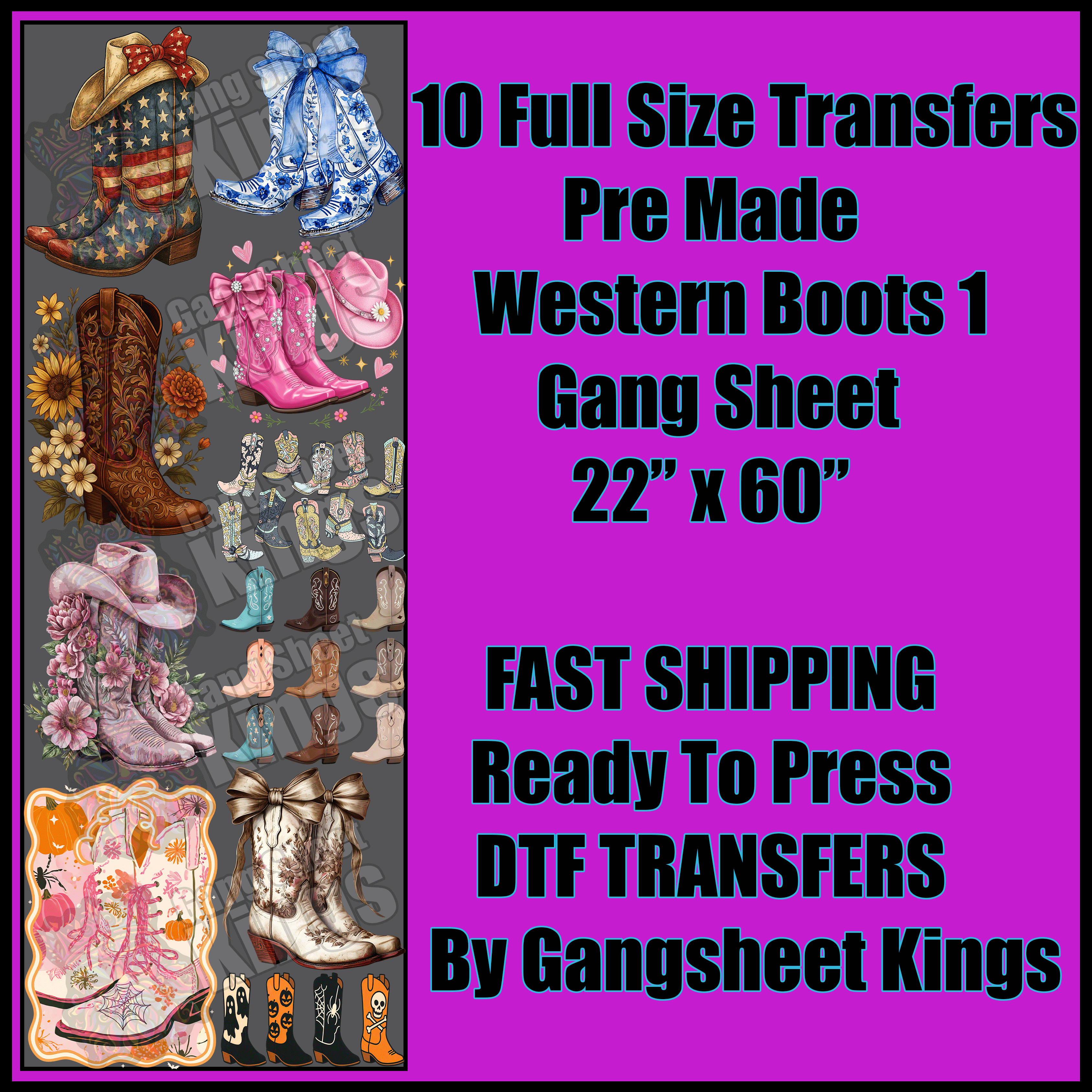 Pre-made gang sheets are professionally designed transfer sheets featuring multiple graphics arranged on a single sheet, ready for heat application onto various surfaces. These sheets are perfect for crafters, small businesses, or anyone looking for high-quality, hassle-free designs. Each gang sheet includes a variety of pre-arranged artwork, saving time and effort by eliminating the need to create your own layout.