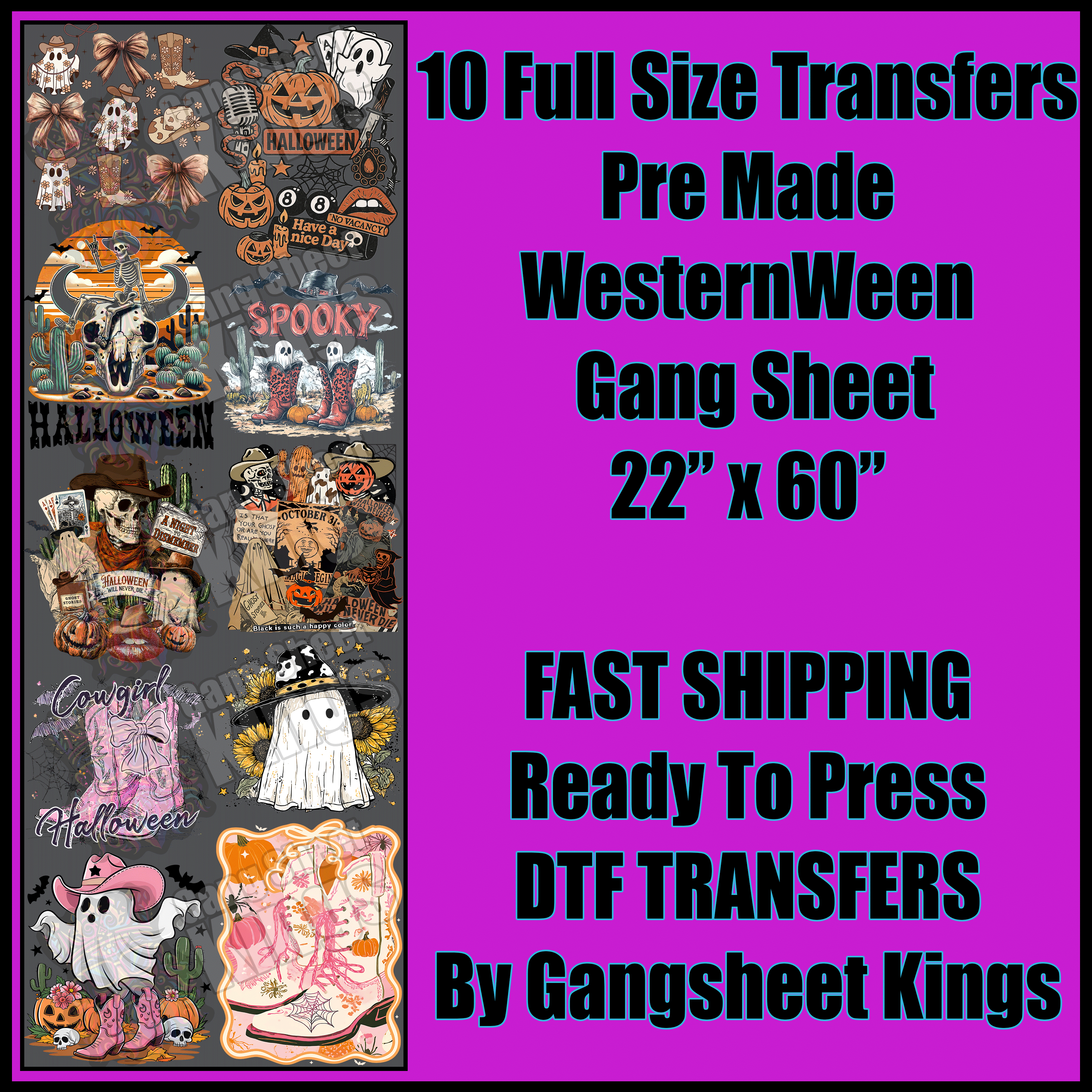 Pre-made gang sheets are professionally designed transfer sheets featuring multiple graphics arranged on a single sheet, ready for heat application onto various surfaces. These sheets are perfect for crafters, small businesses, or anyone looking for high-quality, hassle-free designs. Each gang sheet includes a variety of pre-arranged artwork, saving time and effort by eliminating the need to create your own layout.